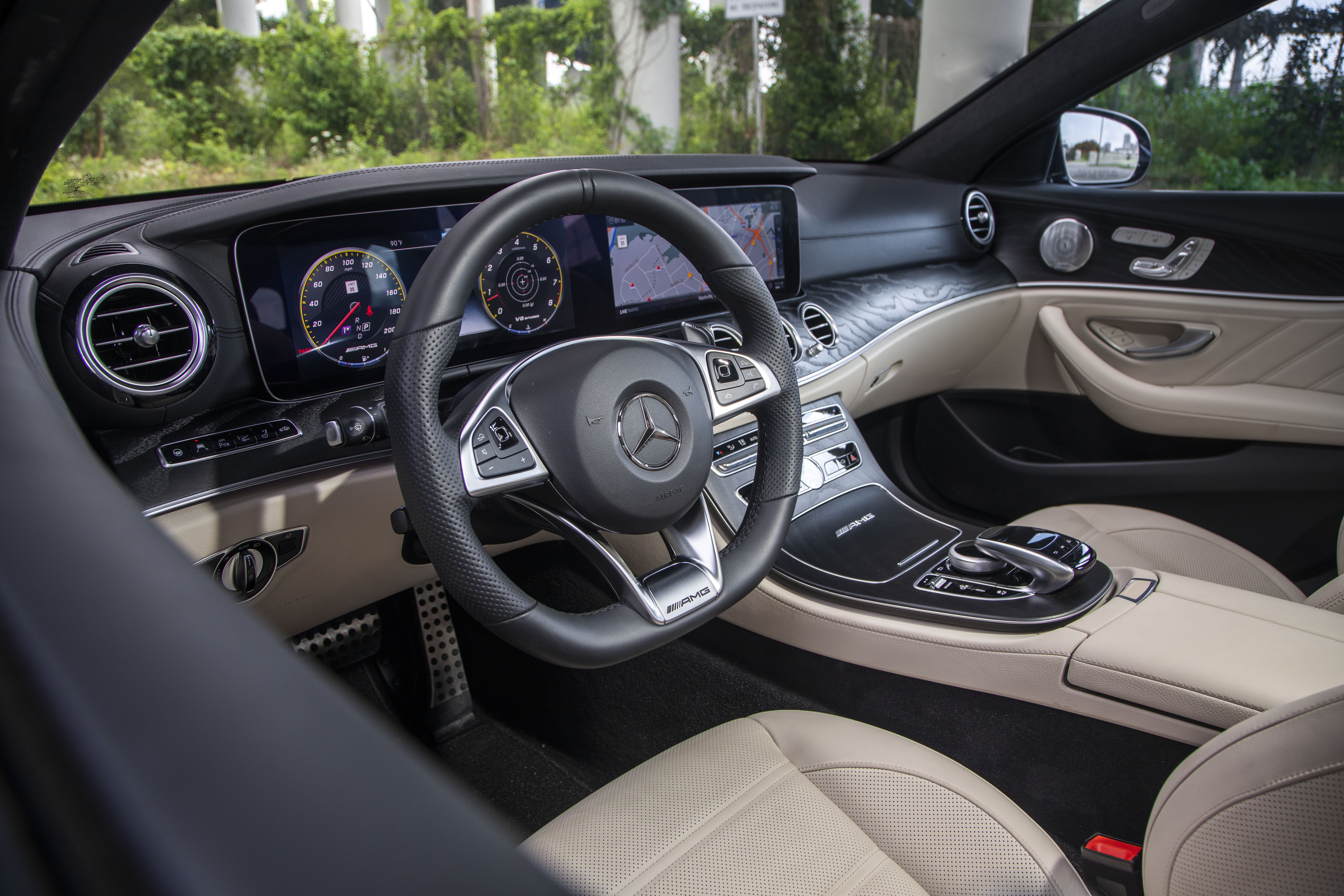 That’s no slight against the CLS-Class, though; Mercedes-Benz’s latest interiors are among the best in the business, and both CLS and E look every bit as expensive as their lofty pricetags and three-pointed stars would suggest. The latest version of the infotainment setup adds the ability to adjust the interior temperature through voice commands, on top of the other capabilities enabled by the central clickwheel-and-touchpad combo and the tiny touch-sensitive pads sitting inboard of 9 and 3 on the steering wheel. (No matter how you adjust the climate, though, the 64-color interior lighting briefly changes its shade to match, shifting red when you want it warmer and blue when you’d like it chillier.) The “Energizing Comfort” system, first implemented in the S-Class, seems as pointless as ever; its light-show-and-breeze programs ostensibly claim to recharge or relax the occupants, but wind up being little more than a distraction.