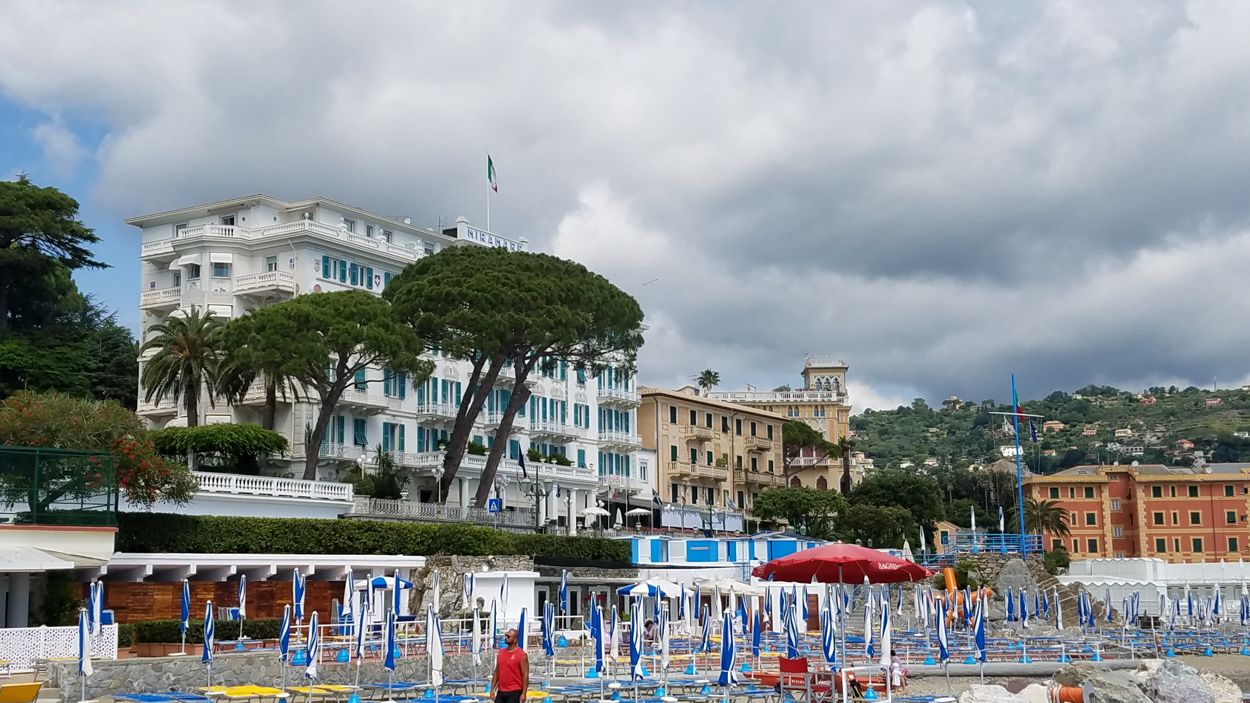 The la dolce vita vibe is on full display at the Grand Hotel Miramare, where we stayed. Built in 1903, the elegant Liberty Style hotel (Italy’s version of Art Nouveau) is a frescoed, white-stucco wedding cake that has seen the ebb and flow of Italian Riviera history. Vivien Leigh and Laurence Olivier honeymooned at the Miramare in 1949. Richard Burton and Elizabeth Taylor also stayed—and, let’s assume, smoked, drank, and fought—here. The beachfront hotel’s owner, restorer, and champion is Andrea Fustinoni. His family made its money in Milan’s ice and refrigeration business in the early 20th Century as owners of Frigoferi Milanese, the now-restored warehouse complex that cooled the city’s meat and produce; and the Palazzo del Ghiaccio (or “Ice Palace”), the handsome skating and sports facility that was then Europe’s largest indoor skating rink. (Pink Floyd was among the musical acts that played there, in a 1971 concert). The Fustinoni family moved to the Riviera in the wake of World War II and acquired the Grand Hotel Miramare in 1945.