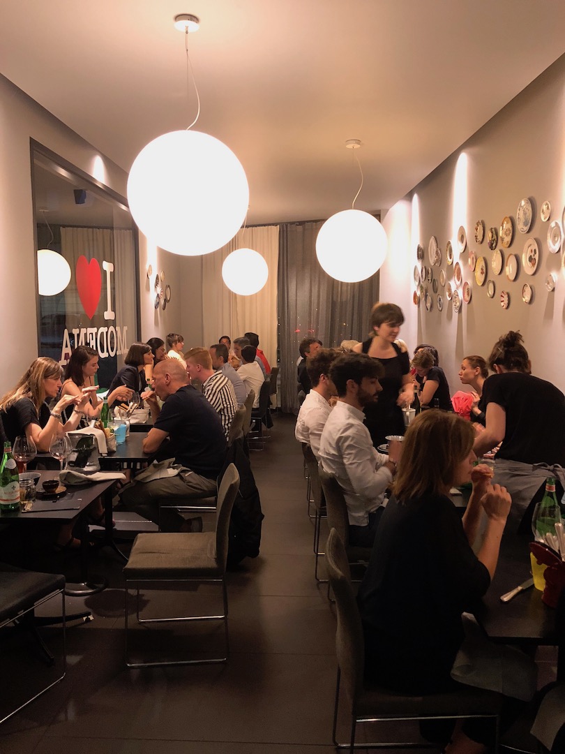 That something turned out to be tigelle, (pronounced “ti-GEL-ay”), the mold-baked flatbread—often with a flower symbol molded in—that National Geographic aptly described as “the lovechild of a pancake and an English muffin.” We polished off tigelle rounds, filled with salumi and fillings—mortadella, prosciutto, fat-melting lardo—until we ourselves were full. Time to move on, quickly.