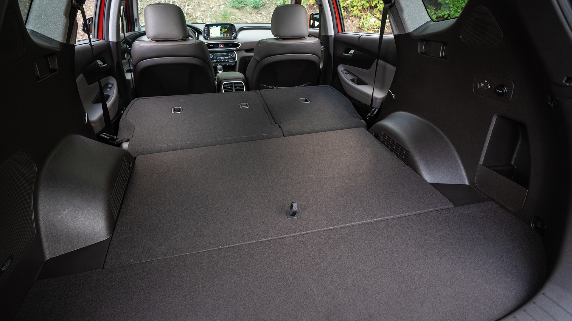 Still others will find joy in the standard Apple CarPlay and Android Auto compatibility. Options like a proximity key, a hands-free (and foot-waggle-free) automatic rear hatch, and a heads-up display are unlocked as you move up from the base S model to the Ultimate trim sampled for this first drive, but every Santa Fe benefits from a lot of behind-the-scenes work, like extra insulation and laminated side glass to make the cabin as calm and quiet as possible. Cargo space is preserved by the upright exterior design and ditching the third row, but it’s still middle of the pack at 36 cubic feet behind the rear seats and 71.3 with the rears folded down.