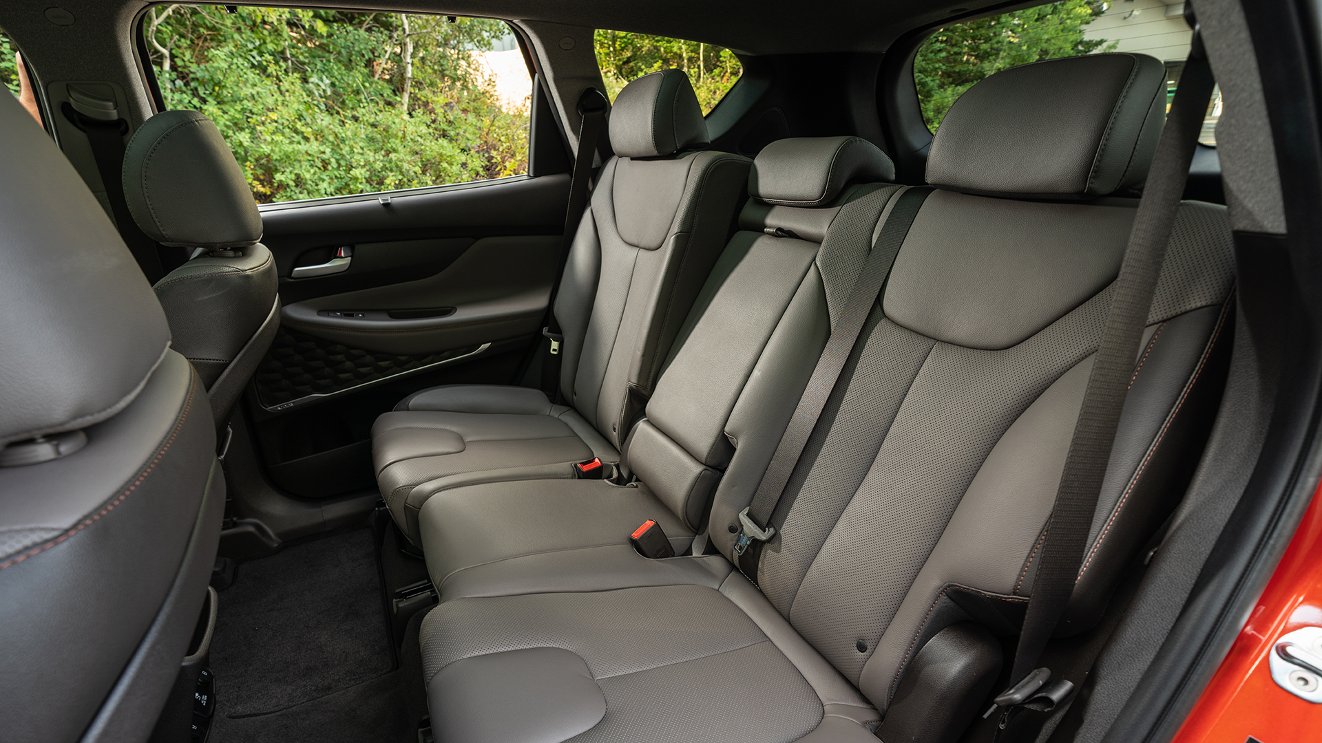 Regardless, the biggest bonus for most prospective buyers will be the extensive suite of standard driver safety features found in the Hyundai Santa Fe. Automatic forward and reverse emergency braking, full-speed adaptive cruise control, blind spot monitoring and assist, lane keep assist, automatic high beams, driver attention monitor, and a particularly clever system called Safe Exist Assist that aims to stop passengers from opening their doors into traffic are all standard on every trim. That’s a far more comprehensive package than you’ll find anywhere else at this price point. There’s another impressive option, too: a rear occupant alert system that can detect movement after the car has been shut off (say, a child left in a hot car), trigger the vehicle’s alarm, and send an alert to the owner’s smartphone.