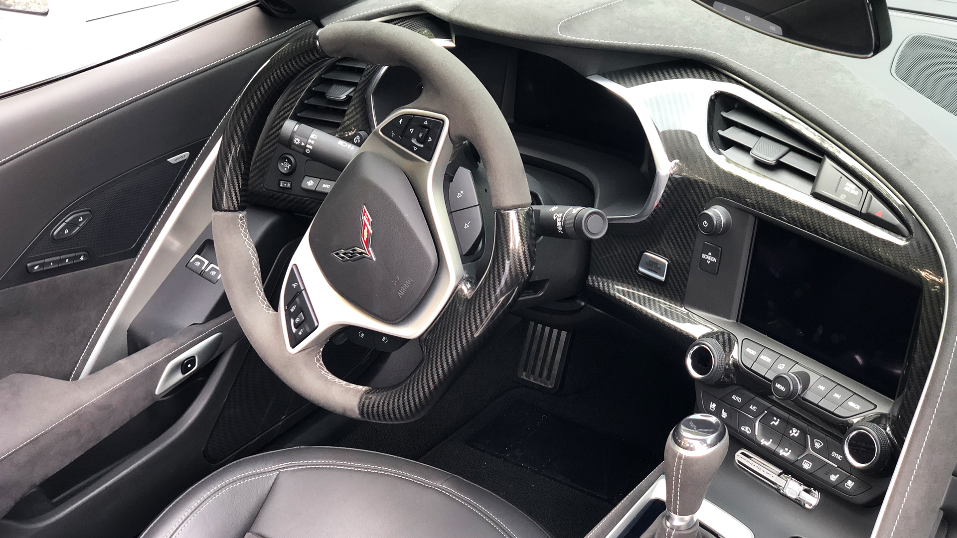 - A Corvette is so genuinely recognizable, and my loaner was on visual-option crack. $3,995 Visible Carbon Fiber Ground Effects Package? Obviously. $1,995 Visible Carbon Fiber Hood? You betcha. Carbon fiber aside, this vehicle’s exterior design is aggressive beyond belief. Anytime I parked it, I’d return to people ogling or snapping pictures. Out of all the test cars I’ve driven, I’ve never seen people react like this. There is a magnetism you can see when you’re driving this thing in the wild, away from any auto journalist parking lots lousy with pretty toys. The special nature, the uniqueness, is palpable and intoxicating.