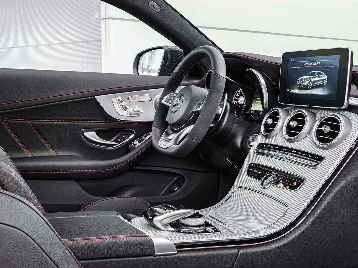 The “C63 lite” treatment extends to the car’s styling. Quad tailpipes, aggressive front air intakes, a chrome front splitter and a bright rear diffuser give it the visual panache the average buyer expects from an AMG. Cognoscenti will know it’s not a full-blown C63—the single-bar grille and lack of flared haunches give it away—but the overall look is bold enough to show up those basic bitches in their A5s and 4 Series.