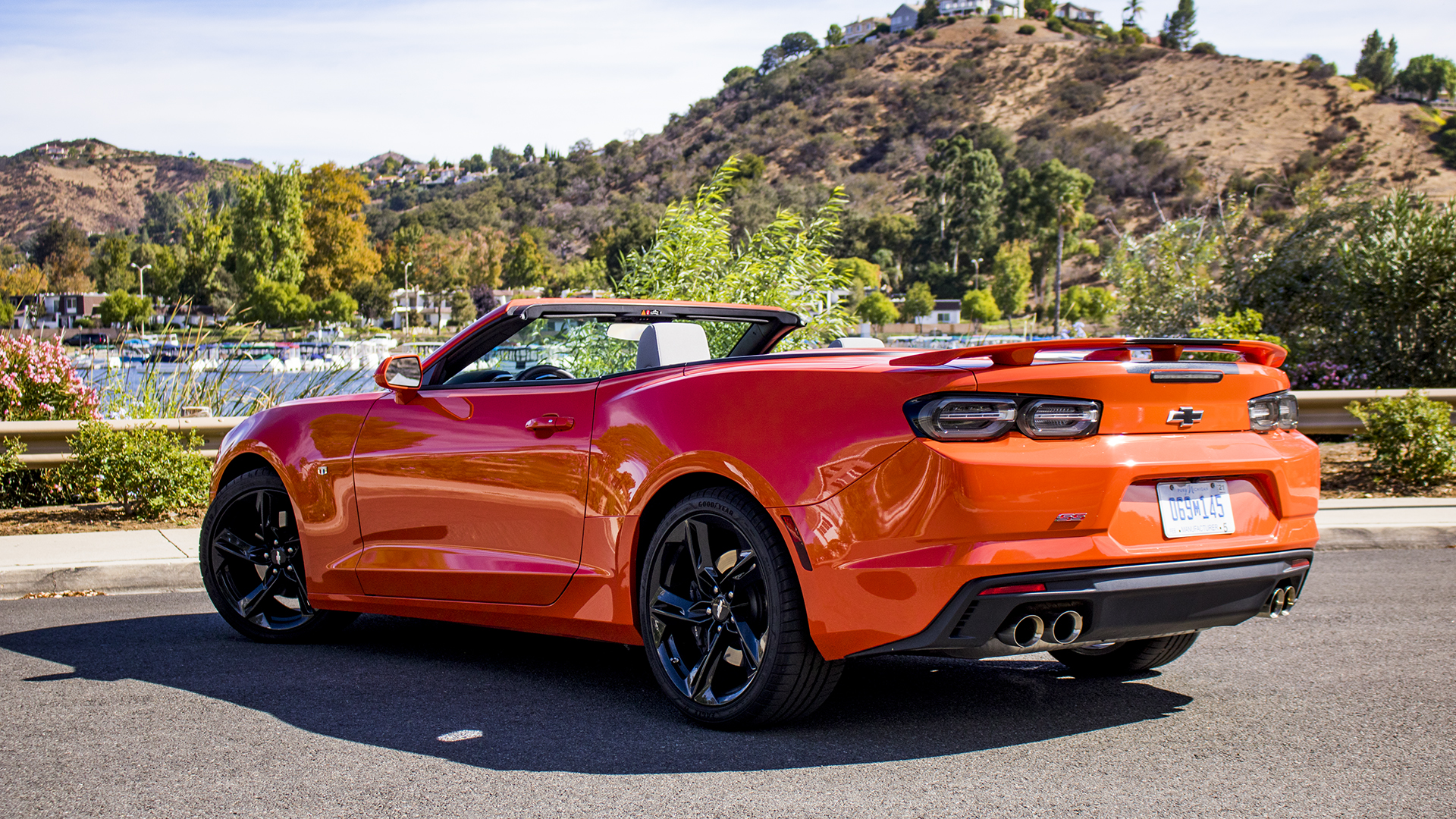 There are purposeful pops and crackles in the exhaust—Oppenheiser advised keeping it between 3,000 and 5,000 rpm to enjoy the music—and it automatically downshifts to rev the engine when you put it into Sport or Track mode as if to say, “Okay, let’s do this.” Line lock and launch control make triumphant appearances. It’s supposed to “not feel like a Mustang,” Chevy says, and a classic So-Cal loop in a Crush Orange 2019 Chevrolet Camaro SS convertible confirms the modus operandi here.