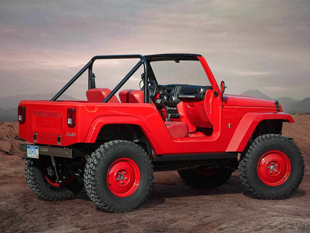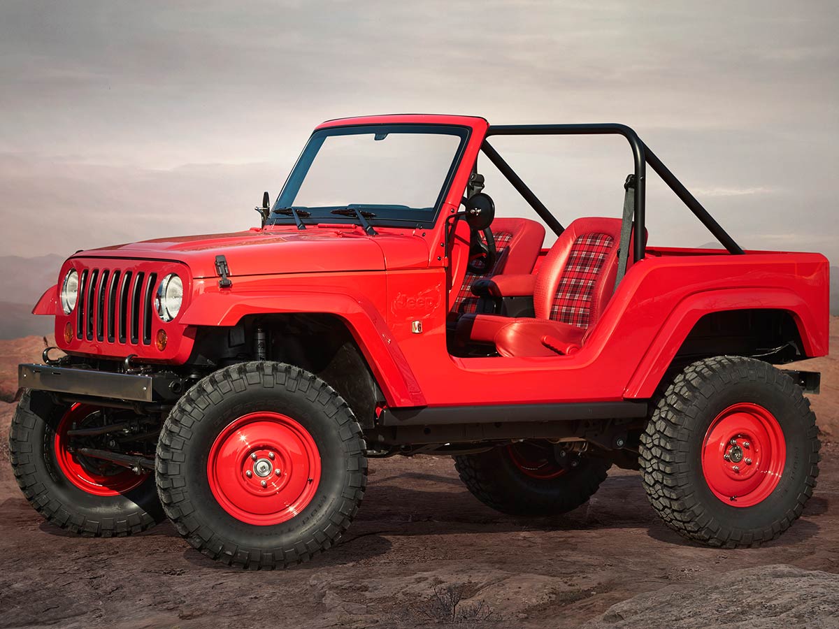 The spirit of the plucky CJ-5 lives on in this trucklet, a Wrangler that’s been cut down 26 inches shorter than stock. The chop-job reduces both length and weight, giving the Shortcut increased maneuverability on the trails around Moab. But a simple hack isn’t enough to render a Jeep concept vehicle ready for the Easter Safari. So engineers and designers added a bevy of unique body panels—hood, grille, fenders, etcetera—then outfitted it with an old-school interior. The red plaid scheme is actually perfect.