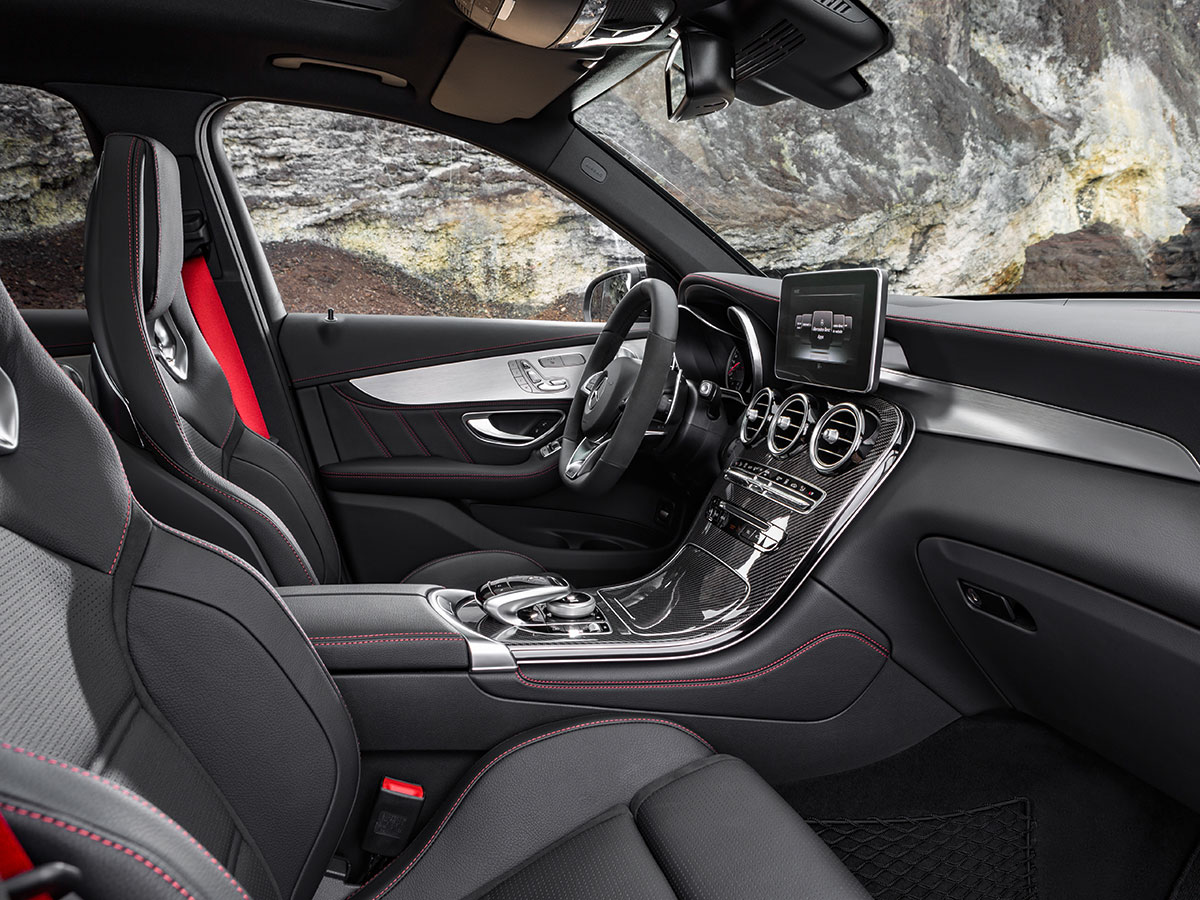 It’s not just us. Even Mercedes-Benz’s press release seems like little more than a rehash of the ones they used for the last two AMG 43s. There are the same references to the adjustable AMG-tuned air suspension and the special steering knuckles. The same mention of the AMG 4MATIC AWD with its 31:69 front-rear power distribution. Almost identical wording regarding the “multifunction sports steering wheel in leather with deep embossing in grip area, flattened bottom section, with red contrasting topstitching.” Hell, the GLC43’s press release is only the third time we’ve ever seen the word “elastokinematics.” Wanna guess what the other two were?