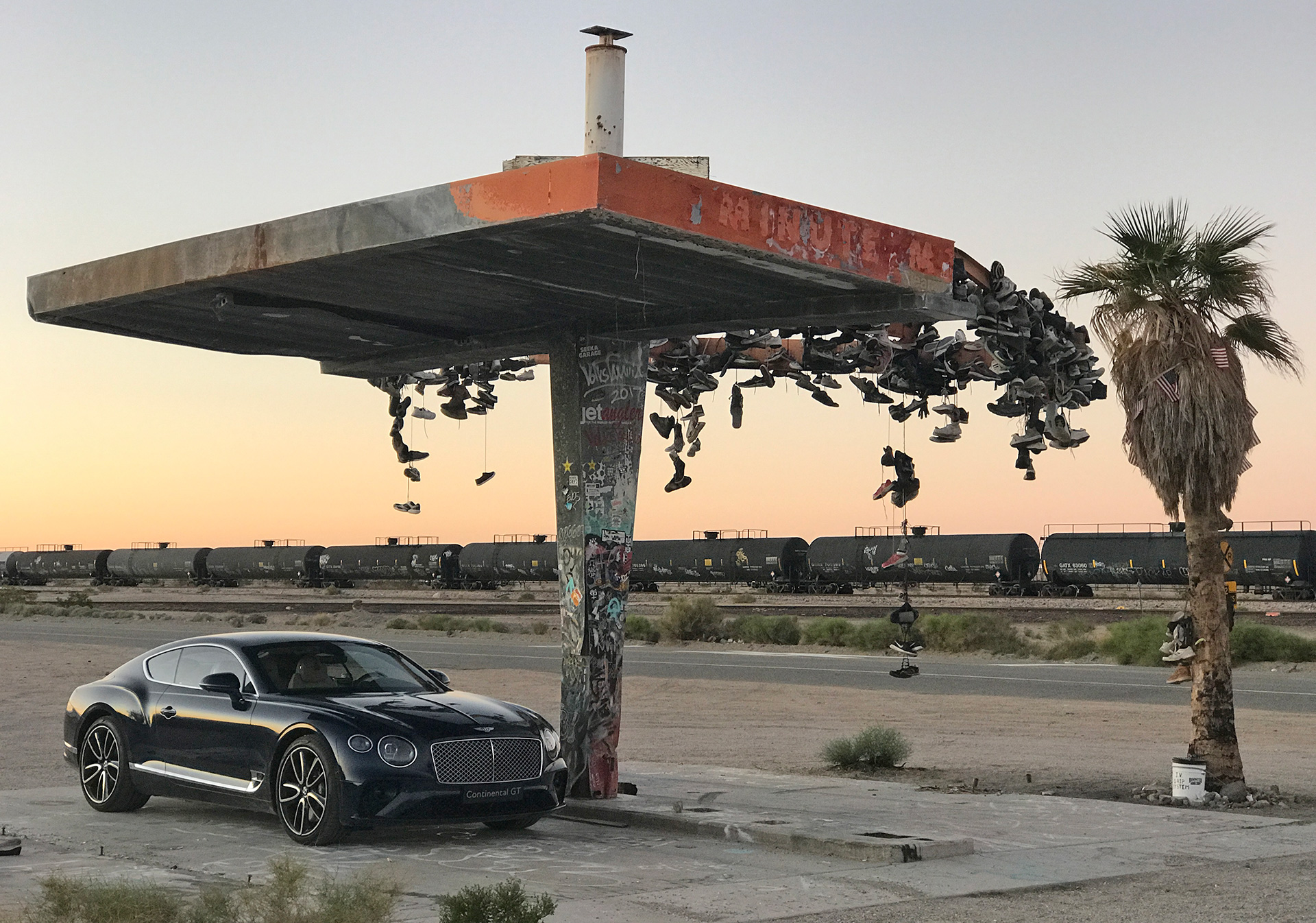Past Joshua Tree National Park, the last of the traffic disappears, leaving a 92-mile stretch of empty road lancing straight into the Colorado Desert. The distances out here deceive you; even with the speedometer pegged at 100, the distant mountains barely seem to inch closer, like glaciers creeping towards you at a geologic pace. In a minivan packed with unhappy children, it’d no doubt feel like hell. Alone in a 626-horsepower Bentley with the setting sun turning those mountains gold and blue, it’s heaven. Straightaways and high-speed sweepers trade off again and again, a blacktop ribbon there for the taking. It’s a road made for a grand tourer, and the Conti and I make the most of it, the car’s broad nose punching down the straights before the calipers clamp down on the massive discs with the force of Samson pulling down the columns of a temple. It’s a rare day when you find the car you’re driving is made for the road you’re on; this day is one of those rare ones.