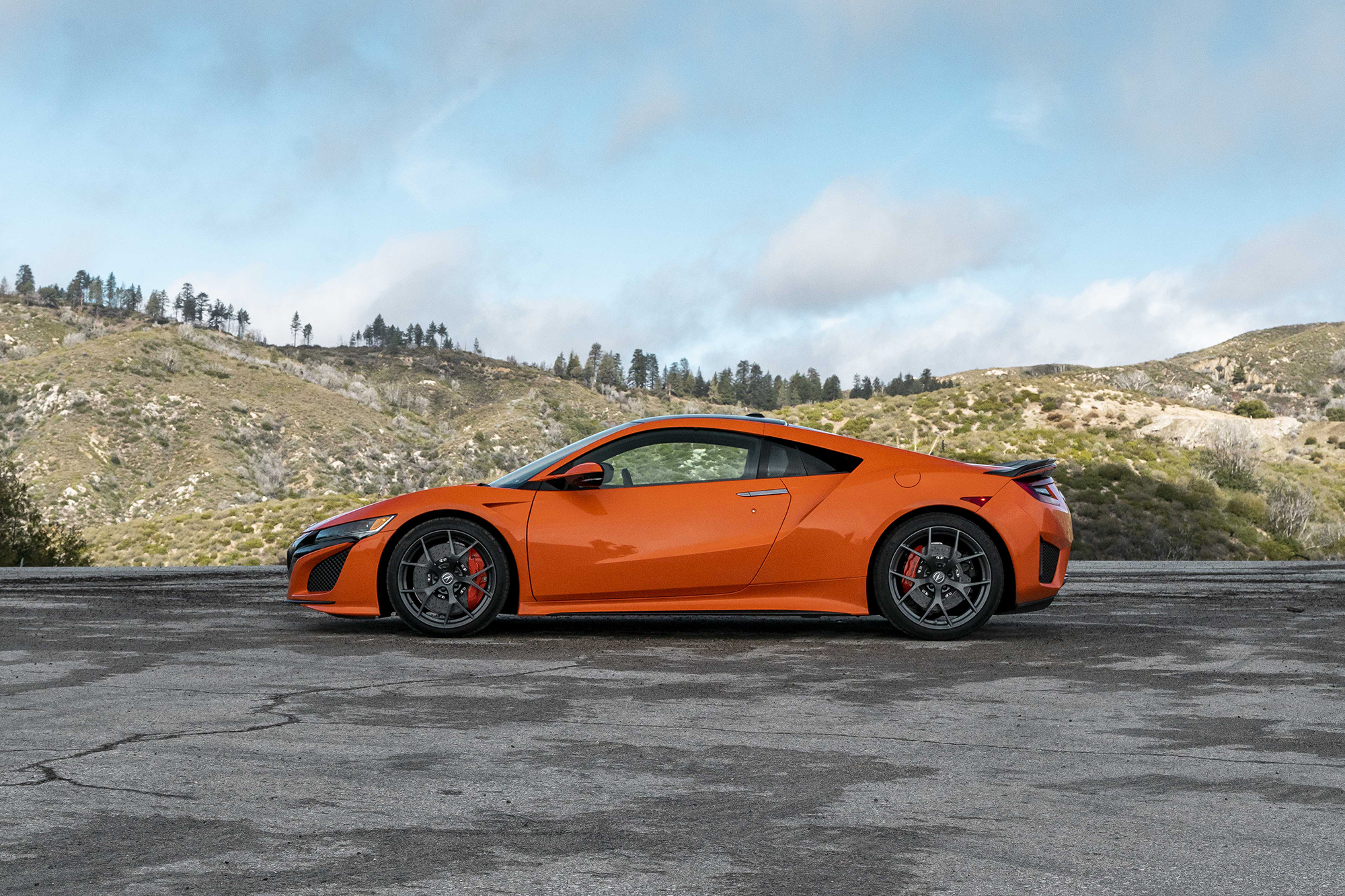 The changes for 2019 are incremental, but important. Honda engineers focused on handling, swapping out the iffy Continental SportContact 5P base tire for the sure-footed ContiSportContact 6. Matched with stiffer front and rear stabilizer bars and some tweaks to the programming behind the adaptive dampers and steering, the NSX’s new tire is a revelation, serving up an impressive amount of grip even at lower temperatures. It also brings some cosmetic changes—a gloss grille, gloss carbon-fiber accents, my test car’s nifty Thermal Orange paint job and orange brake calipers, and the blue interior among them—and more standard features, like power heated seats and front-rear parking sensors. All that for a starting MSRP boost of just $1,500.