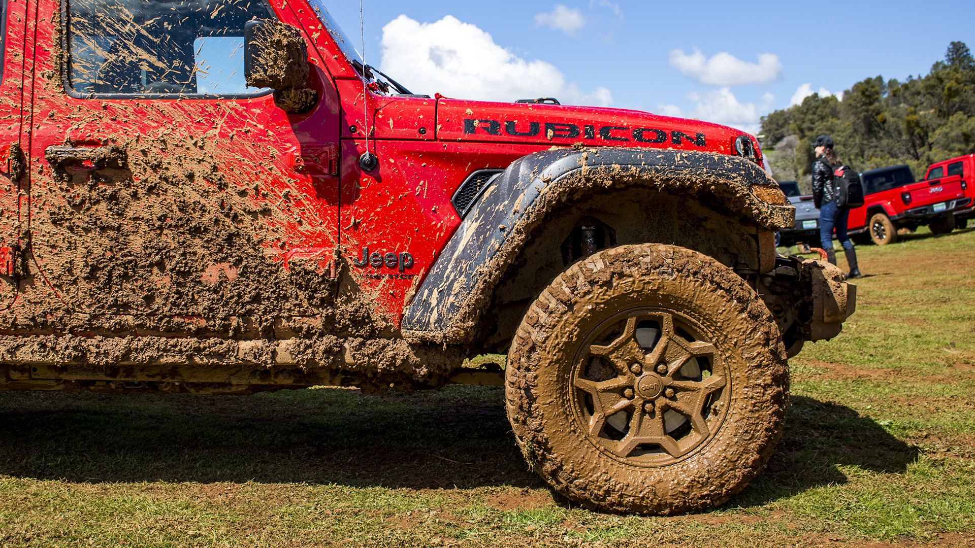 Really, the only thing that will slow down the Jeep Gladiator are its base tires. The standard 31-inch Bridgestone all-seasons standard on the lesser models aren’t well-suited for anything slick.