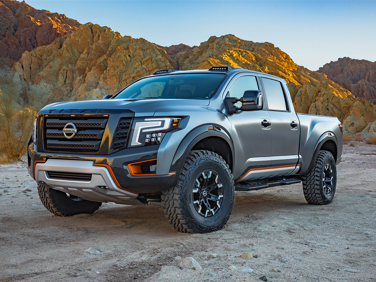 This concept truck is a Titan XD on steroids, crafted for the person who looks at the Cummins 5.0 liter V8 Turbo diesel beast and thinks, “If only it had more truck.” It’s part Baja “Hardbody” competition truck, part armored tank and wholly savage. Affixed to the fully boxed ladder frame chassis is a custom suspension design. The front features custom upper and lower control arms with performance ball joints and a race-inspired internal bypass reservoir coil-over shocks. Hydraulic pressurized bump stops were added for…safety? The whole body was raised three inches to accommodate the 37-inch off-road shoes. The front fascia, meanwhile, was redesigned to look more menacing, while the fender flares were accentuated to give it a more muscle. Mission accomplished: the thing is scary.