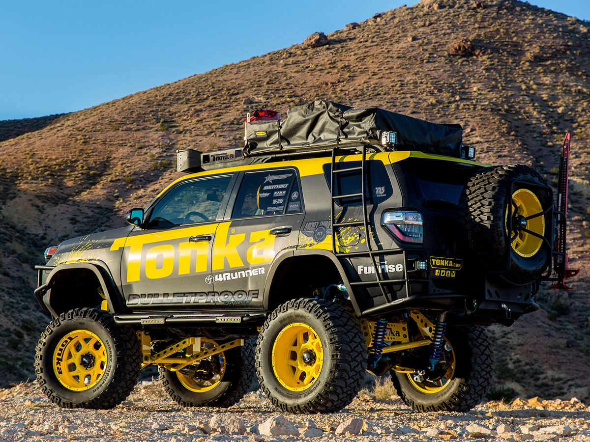 When a car manufacturer teams up with a toy builder, everyone wins. The concept sits atop 38-inch Mickey Thompson Baja MTZs, and enjoys a ten-inch Bulletproof Suspension lift kit to give it enough ground clearance to clamber over decent-sized Sub Zero. Not that you could miss something so brightly stickered, but there are LED lights above each tire for maximum attention-grabbing. Custom welded bumpers, roof rack, side steps and ladders fit nicely, as does the pop-up tent on the roof. Under the bonnet is the same 4.0 liter V6 that the production 4Runner enjoys—more than ample to get this show-piece up and over the rocks.