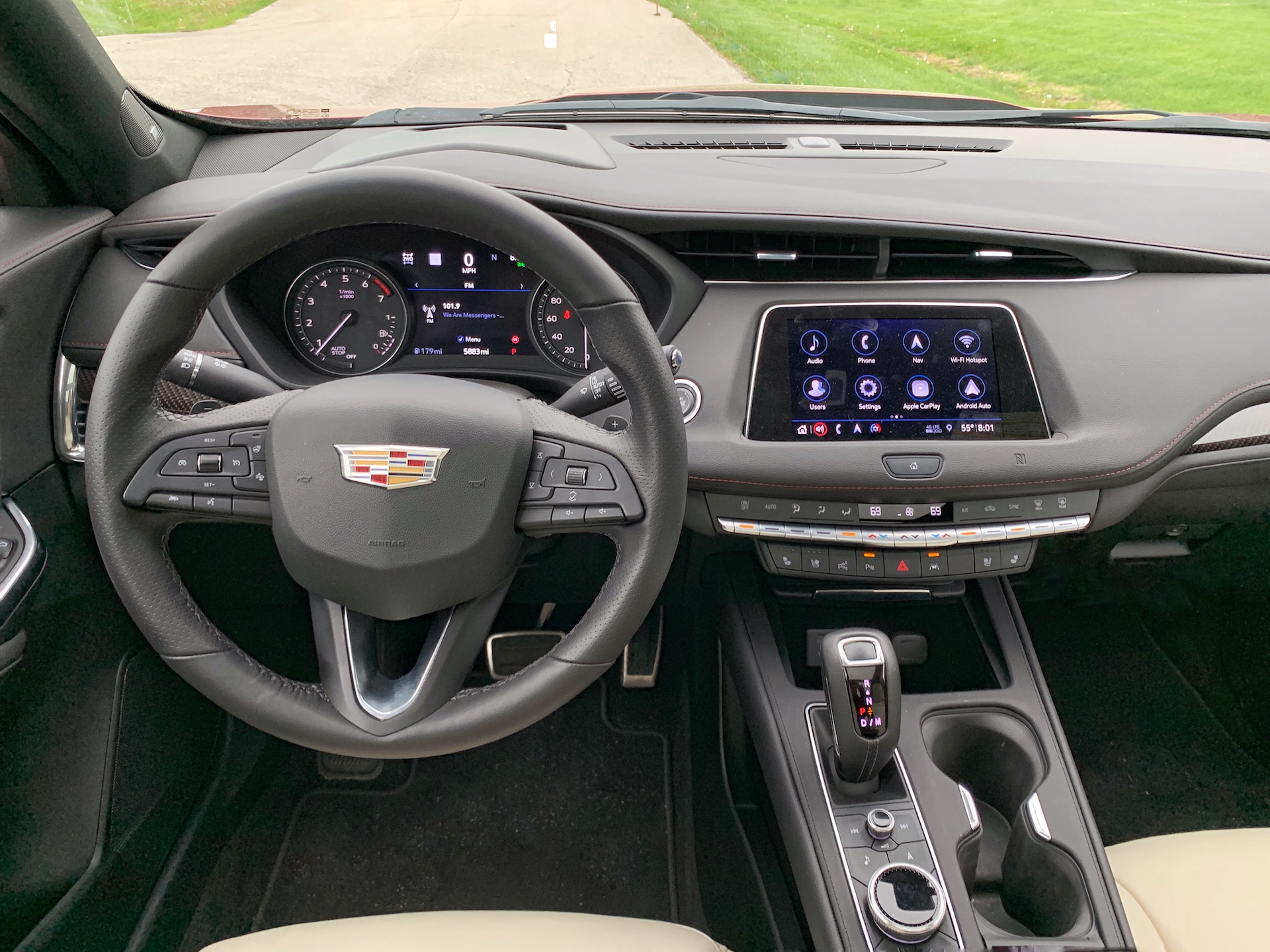 - The XT4 is up to date on modern tech. From a heads-up display to Apple Carplay/Android Auto and wireless charging for cell phones, my tester had all of the right features that one would expect from a $50,000-plus vehicle. The $770 Driver Awareness Package included a neat following distance indicator that let you know when you’re following too closely, auto high beams, forward collision alert, lane-keeping assist with lane departure warning, and low-speed automatic braking with pedestrian detection. Blind spot monitoring, rear cross traffic alert, and a trick rearview camera system are included standard.
