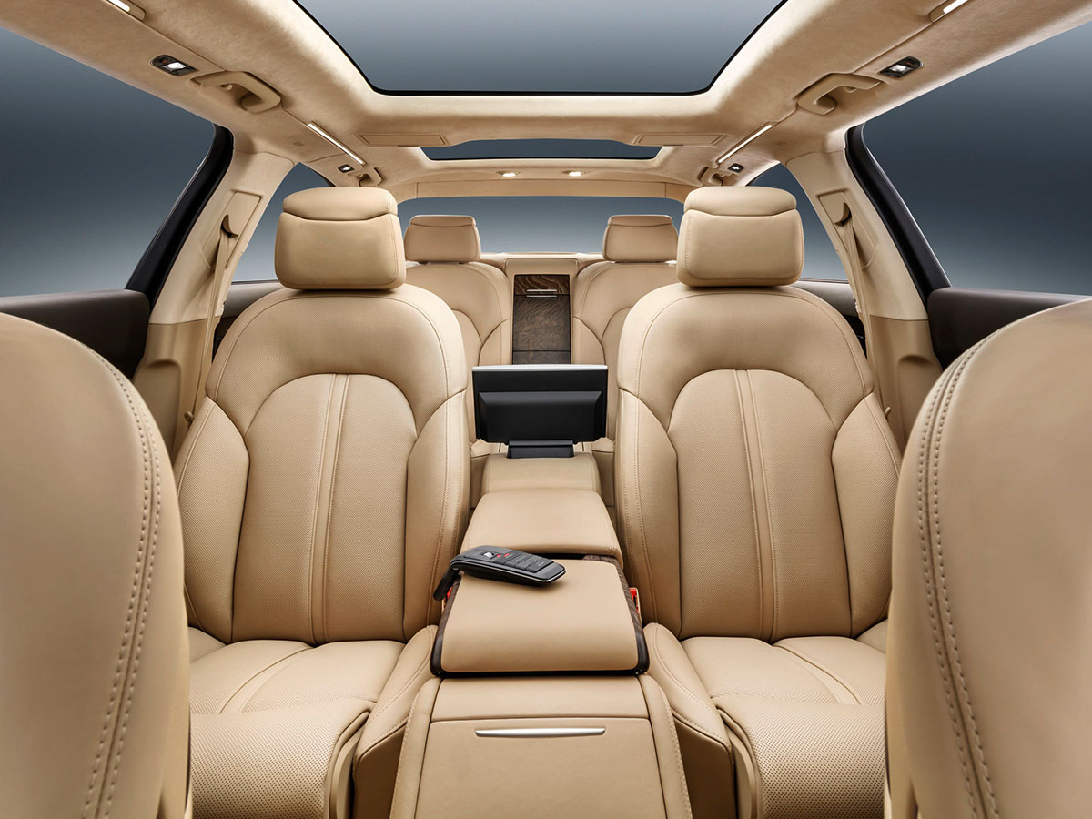 To match the rest of the car’s advanced aluminum frame and cladding, Audi engineers worked for over a year to create an elongated body that would maintain the model’s rigidity without adding unnecessary weight. That means—despite the length, reinforcing beams and added thrones—the 6-seat Audi A8L Extended weighs “just” 5,331 pounds, or a full 600 pounds less than the four-seat Bentley Mulsanne Speed. That allows the Audi’s relatively puny 3.0-liter six-cylinder (in comparison, the Mulsanne sports a 6.75-liter V8) to motivate the limousine to 60 mph in an entirely-acceptable 7.1 seconds. (In the Seventies, Mercedes’ 6.9-liter 450SEL “hot rod” took 7.5.) In concert with 15+ inch brakes cribbed from the S8, this grand ‘n’ gaudy Audi should perform just as serenely as the standard car.