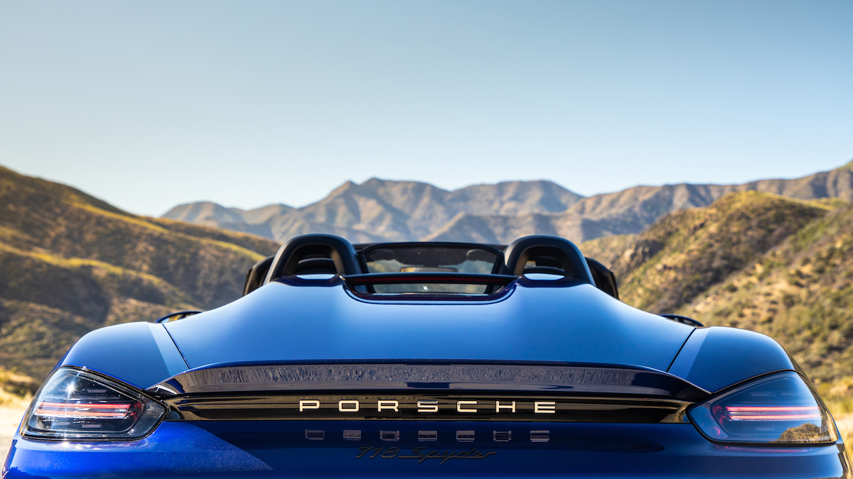 California’s Route 33 lays like a party streamer across the Los Padres National Forest, throwing off great arcs of cambered pavement from Ojai to the Central Valley’s doorstep. It’s a self-evident venue for cars like the Spyder. Here, the golden sunlight and occasional noseful of eucalyptus only enhance the Spyder’s shimmering waves of torque, instant throttle response, and exquisite chassis balance. A familiar flat-six buzz-roar pings off the canyon walls and into the cockpit like a thousand carbon-fiber cellos pounding out “Enter Sandman.” It makes for a helluva day of driving, if you’re into that sort of thing.