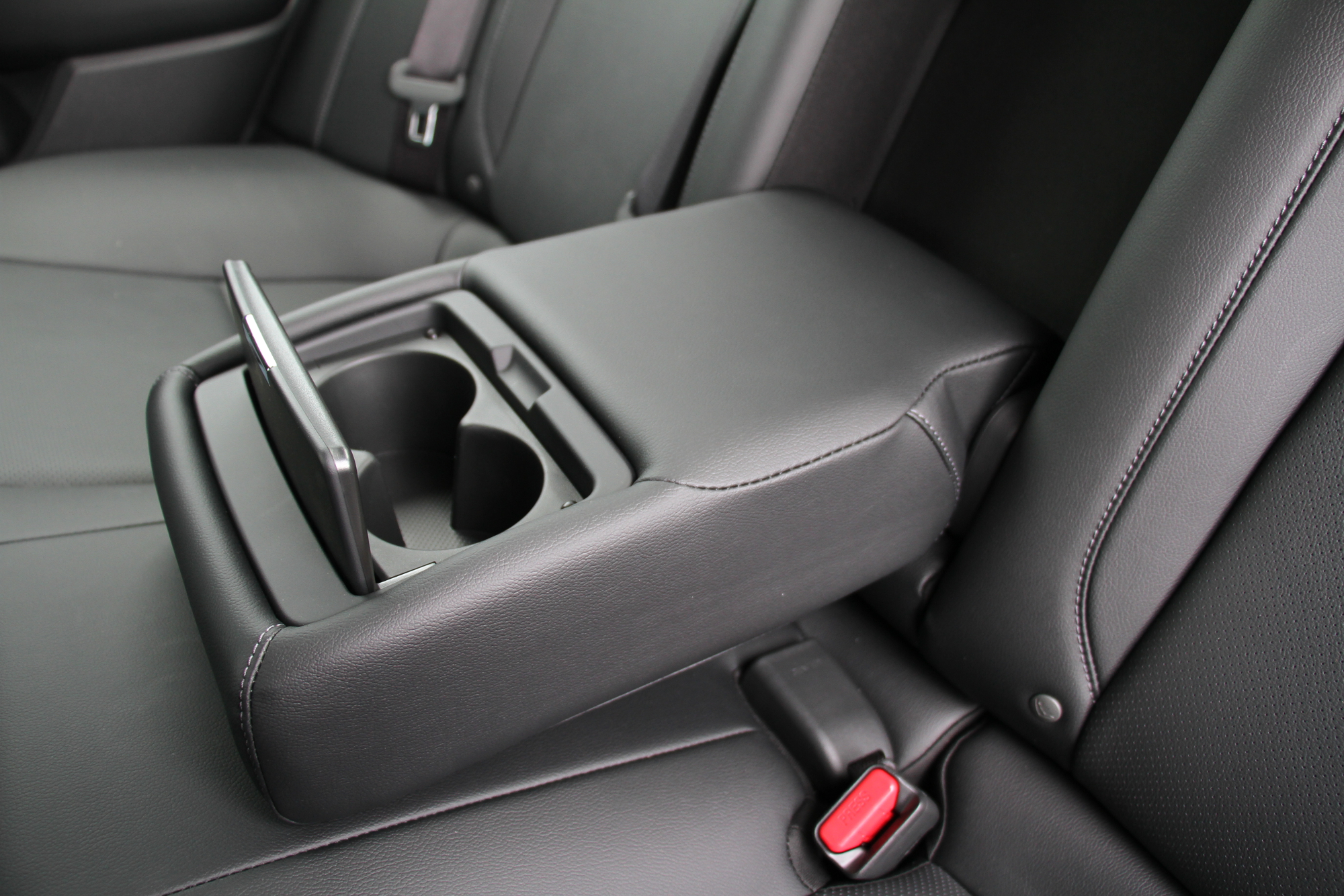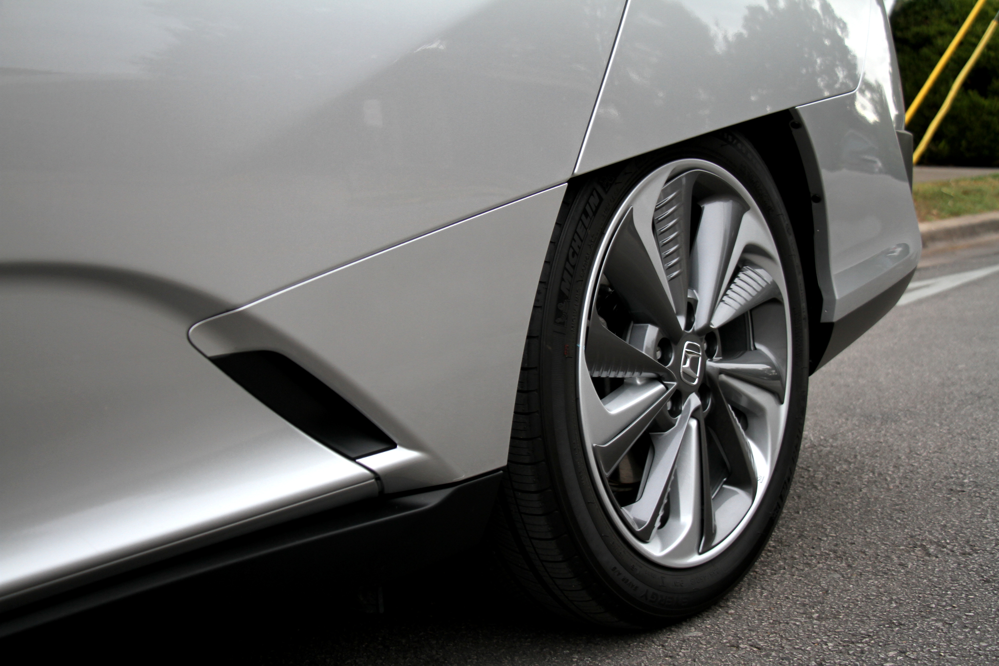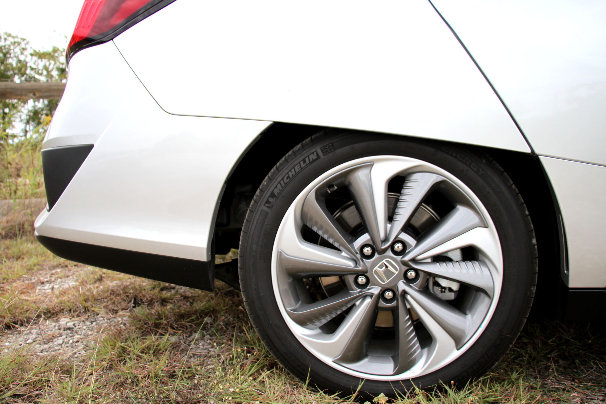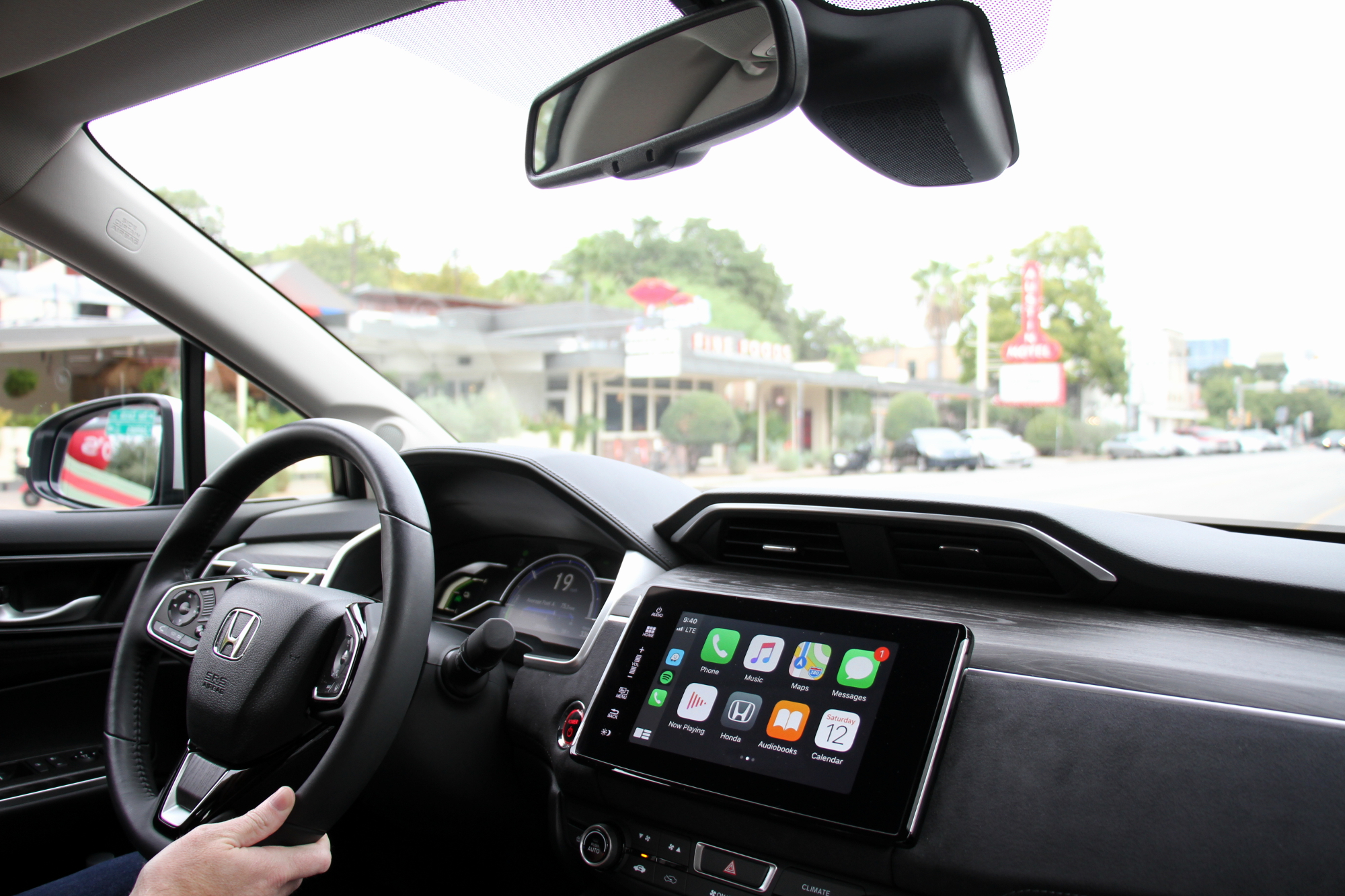 My only real complaint with the Clarity’s driving experience is its large turning radius. Turning around in some of Austin’s smaller downtown areas required multiple-point turns, and no, there isn’t a physical handbrake to make it any snappier either. If you’re an over-the-shoulder reverser, the view backwards is annoyingly bisected by the spoiler, though the lower window integrated into the rear deck lid is a handy touch. As with Honda’s other cars, there’s also a rear-facing camera mounted on the passenger side mirror to improve blind spot visibility.