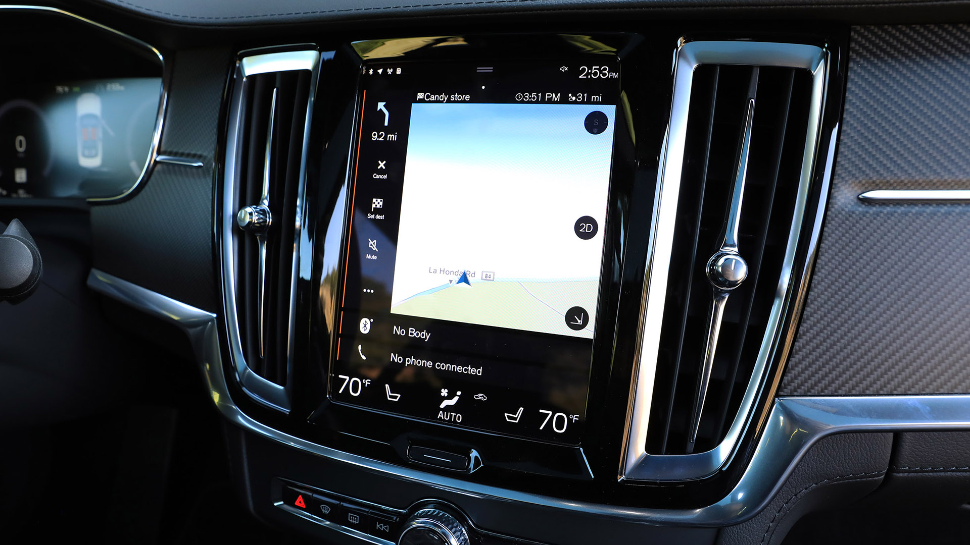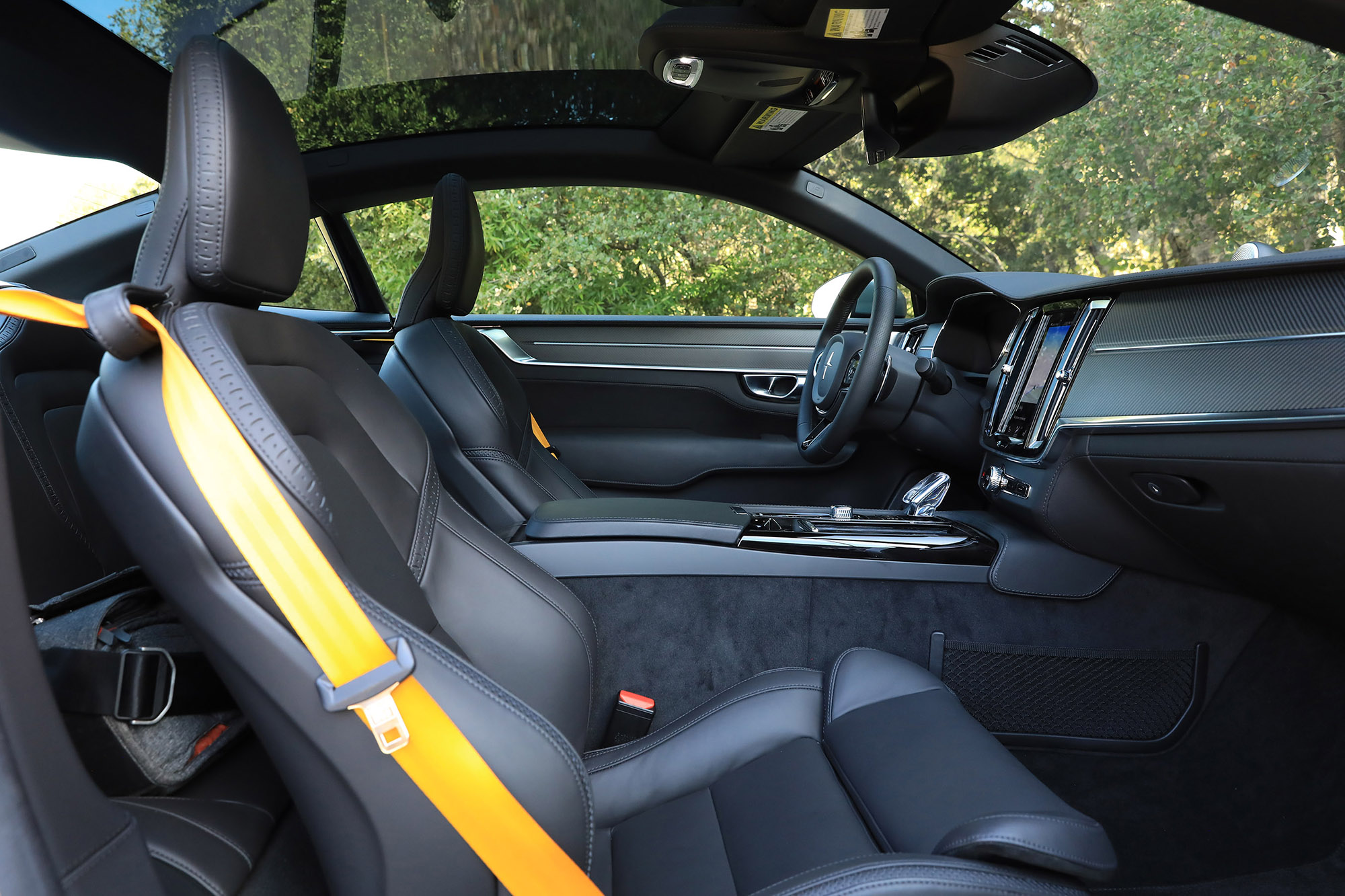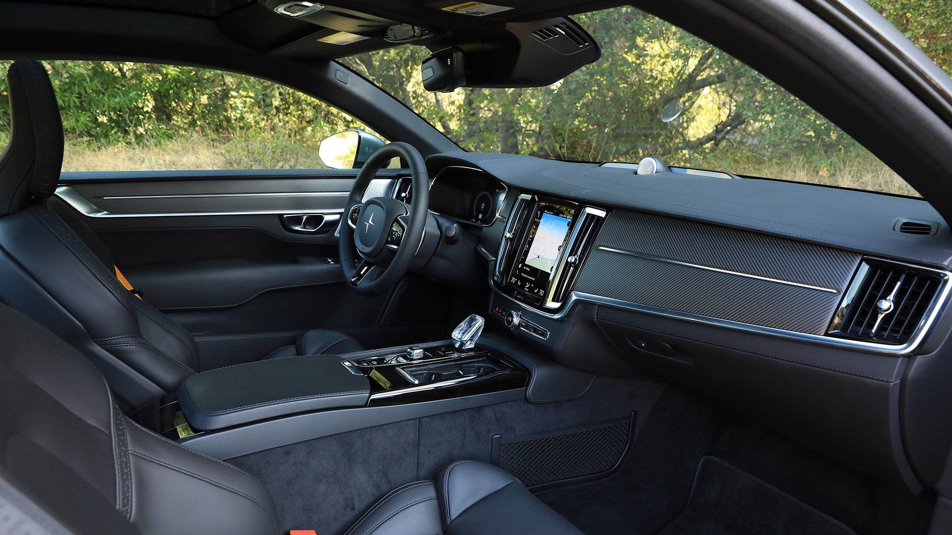 The interior will feel familiar to anyone who has spent some time in modern Volvos, the S60 in particular. Special flourishes like the handmade crystal gear selector and carbon fiber accents do help to bring a sense of occasion to the table, but focal points like the steering wheel, digital gauge cluster, portrait-oriented infotainment system, and squishy seats are pulled from the Volvo parts bin. That’s not necessarily a bad thing—Volvo’s been punching above its weight class for years in material quality and overall refinement, but the shiny plastic used for the steering wheel buttons and many of the cabin’s touch points doesn’t meet the elevated expectations here, especially when you consider the $156,000 starting price.