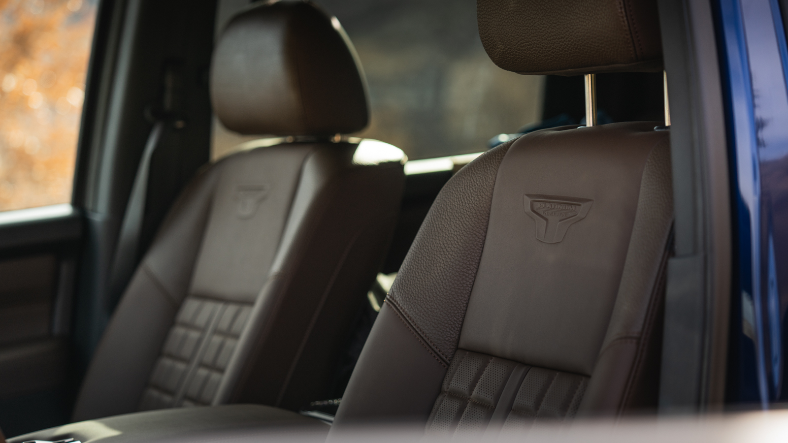 Alternatively, if you’re looking to hit the trail, the Titan Pro-4X remains a solid choice with General Grabber 275/65/R18 tires, an electronic locking rear differential, hill descent control, and Bilstein shocks that provide stellar off-road articulation (and a generally comfy ride overall). What it doesn’t have is any of the advanced terrain management or off-road cruise control tech found in the Ford and Toyota, nor the aggressive lift of the Chevy Silverado Trail Boss. The Pro-4X doesn’t even offer the best ground clearance and off-road angles in the Crew Cab lineup—that distinction belongs to the Platinum Reserve with its 20-inch wheels—though it is the most able Titan in shorter King Cab form. The off-road performance here follows the “good enough for most” philosophy, though at least the optional dual-panel moonroof gives a unique view of the surrounding terrain when you’re tilted at a precarious angle.
