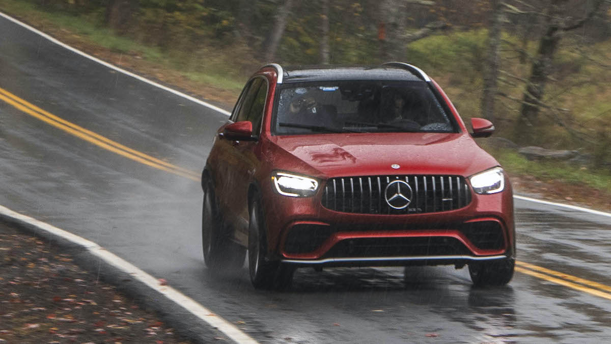 That doesn’t mean the GLC 63 SUV is short on casual thrills. Our recent wet-weather test on the B-roads that snake through the Catskill Mountains in upstate New York showed off how eagerly it clobbers the outer ‘burbs. Quick, precise steering adds a bit of sports-car theater to casual drives. Keeping its street composure falls to lots of chassis equipment. Air springs are standard, as are electronically adaptive dampers, which together coordinate body control via AMG’s Dynamic Select drive modes, which are so profuse that a single day’s not enough to master them all.