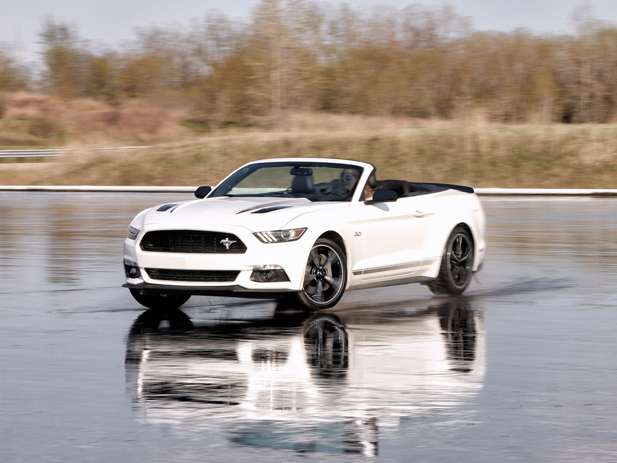 Some numbers: 5.0-liter V8, 435-horsepower @ 6500 rpm, 400 lb/ft torque @ 4250 rpm, 25 highway/15 city mpg, six-speed manual. Base price for the GT Premium convertible: $41,895. CS package: add $1,995. Our car also had the Shaker Pro audio with 12-speakers, an extra $1,795, and worth it if you demand Mick Taylor guitar solos while you’re driving, as I do.