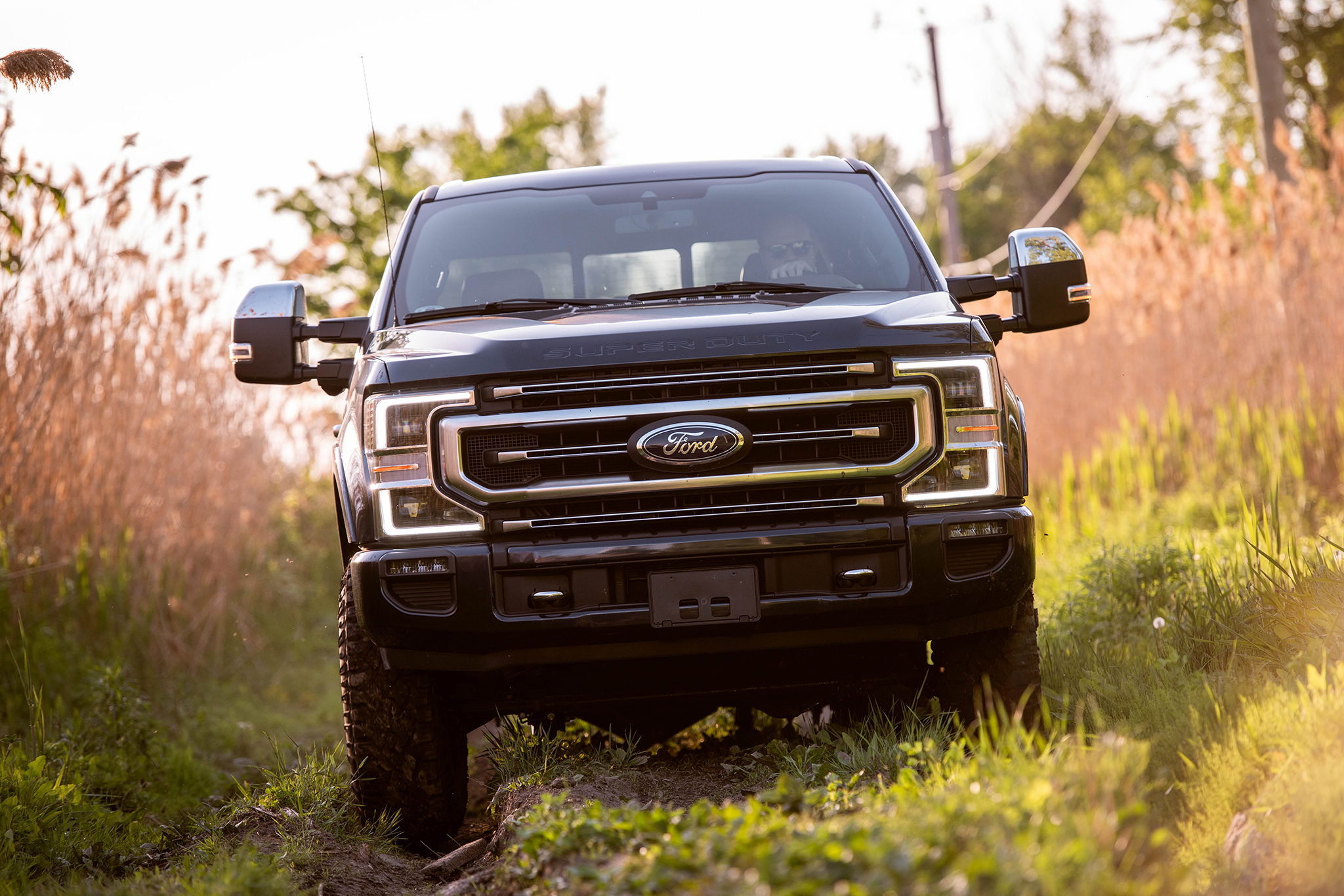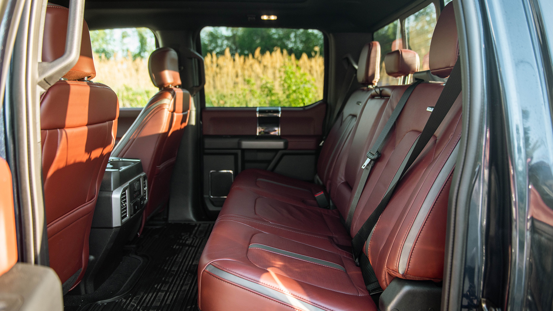 As the truck sank its front axle into the next puddle, I was luxuriating in the F-250 Platinum’s immeasurably spacious, quiet, and fine interior. My truck had the exquisite Kingsville Dark Marsala leather surfaces, complete with massaging and cooling seats, a panoramic roof and a 10-speaker, 1,000-watt Bang & Olufsen sound system.