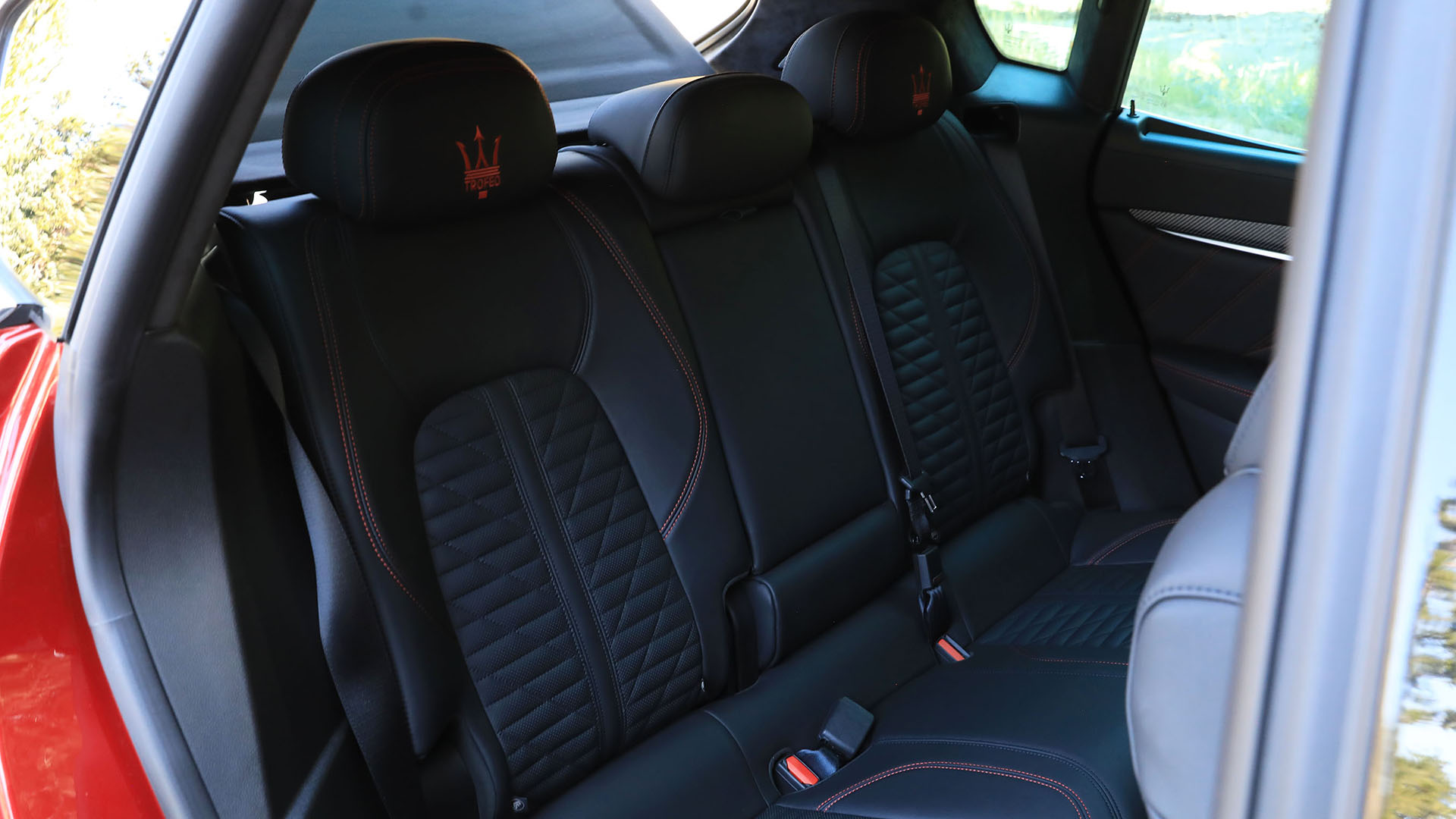 It’s not all fire and fury, though. Leave the drive mode in its most relaxed setting, open the panoramic sunroof, and crank up the 1280-watt, 17-speaker Bowers & Wilkins audio system—all of which are standard here (along with LED headlights, adaptive cruise control, and a surround-view camera, among other things)—and the Levante Trofeo proves it’s more than just a one-trick pony.
