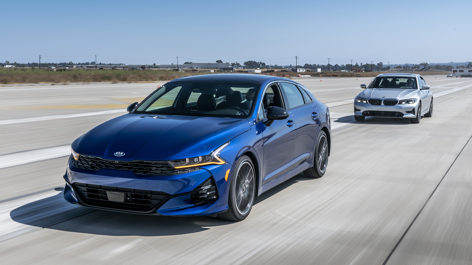 I should be more specific, because this isn’t a story dealing out half-truths in pursuit of a delicious, delicious take. Just the facts, ma’am. Ergo: The front-wheel-drive 2021 Kia K5 GT, the Korean automaker’s edgy Optima reboot with a 290-hp turbo four and a DCT, has a quicker 0-60 mph time, better cornering and better overall handling performance than the rear-wheel-drive 2020 BMW 330i.