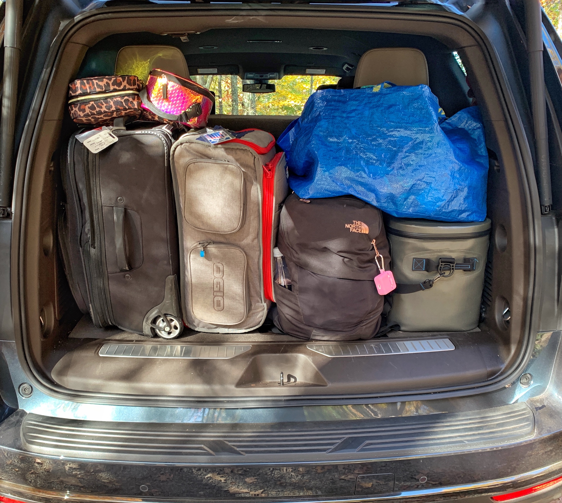 When it was all said and done, I was able to stash two carry-ons, two backpacks, a small cooler, and a couple of other loose items behind the third row. On the external cargo tray itself, I strapped our 250-pound cooler fully loaded with provisions and ice. For obvious reasons, we were bringing our own food and drinks for multiple days so we didn’t have to leave our cabin and expose ourselves and others at restaurants, grocery stores, etc.