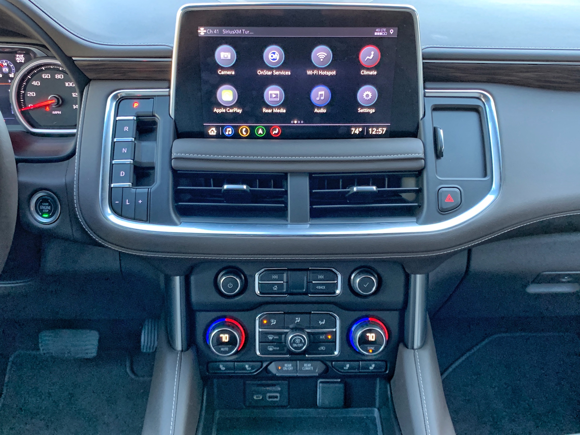 The rest of the in-cabin tech was a welcome addition and worked as expected, with wireless Apple CarPlay (and Android Auto) and wireless charging stealing the limelight during our road trip. It’s just convenient to have your phone charging while mirroring on the 10.2-inch infotainment screen without the mess of charging cables. The 8.0-inch digital gauge cluster is nice, too, along with the crystal-clear rearview and surround-view cameras (with trailer hitch assist), which solidly bring the Tahoe into the year 2021.