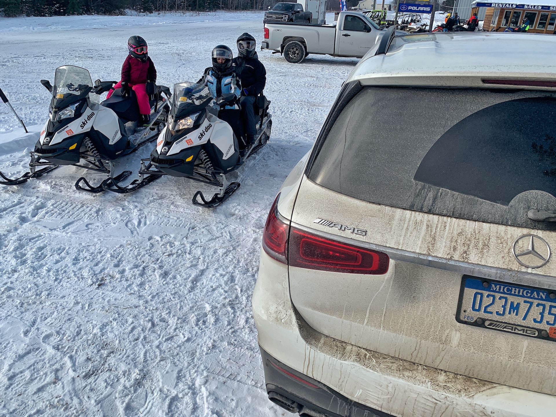 A couple of hours later we finally crossed into Michigan’s Upper Peninsula. The UP at last. Almost immediately, there was plenty of snow on the ground to really justify those pricey specialty Pirellis we were rolling on. And during some roadside stops, they worked together with the 4matic all-wheel-drive to make sure we didn’t get beached in tight-packed snow.