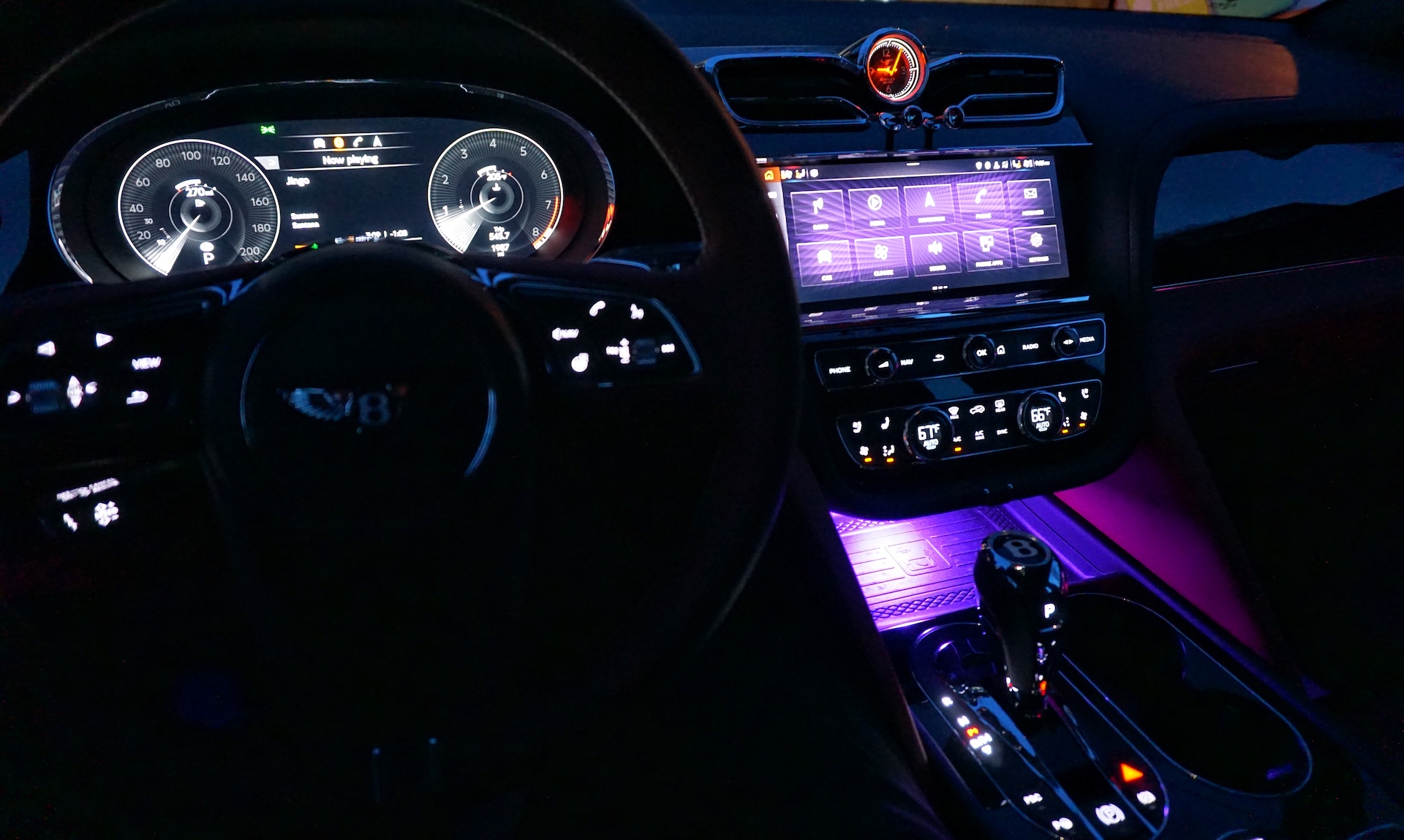 The aforementioned wireless tablet for the rear can manage features such as climate control, seat heating or cooling, overhead and window blinds, and interior mood lighting. It also features a dashboard of sorts that displays the car’s current speed, time and distance since start, outside temperature, and other navigational/trip information. It’s a pretty neat feature also found in executive vehicles like the Audi A8 and Lexus LS 500. Much like it did in those other rides, it allowed my daughter to change the color of the mood lighting about 83 times per car ride, make the cabin extremely warm or cold, and close or open the blinds for no apparent reason. My guess is the average Bentley owner is much more responsible with this controller, or so I hope.