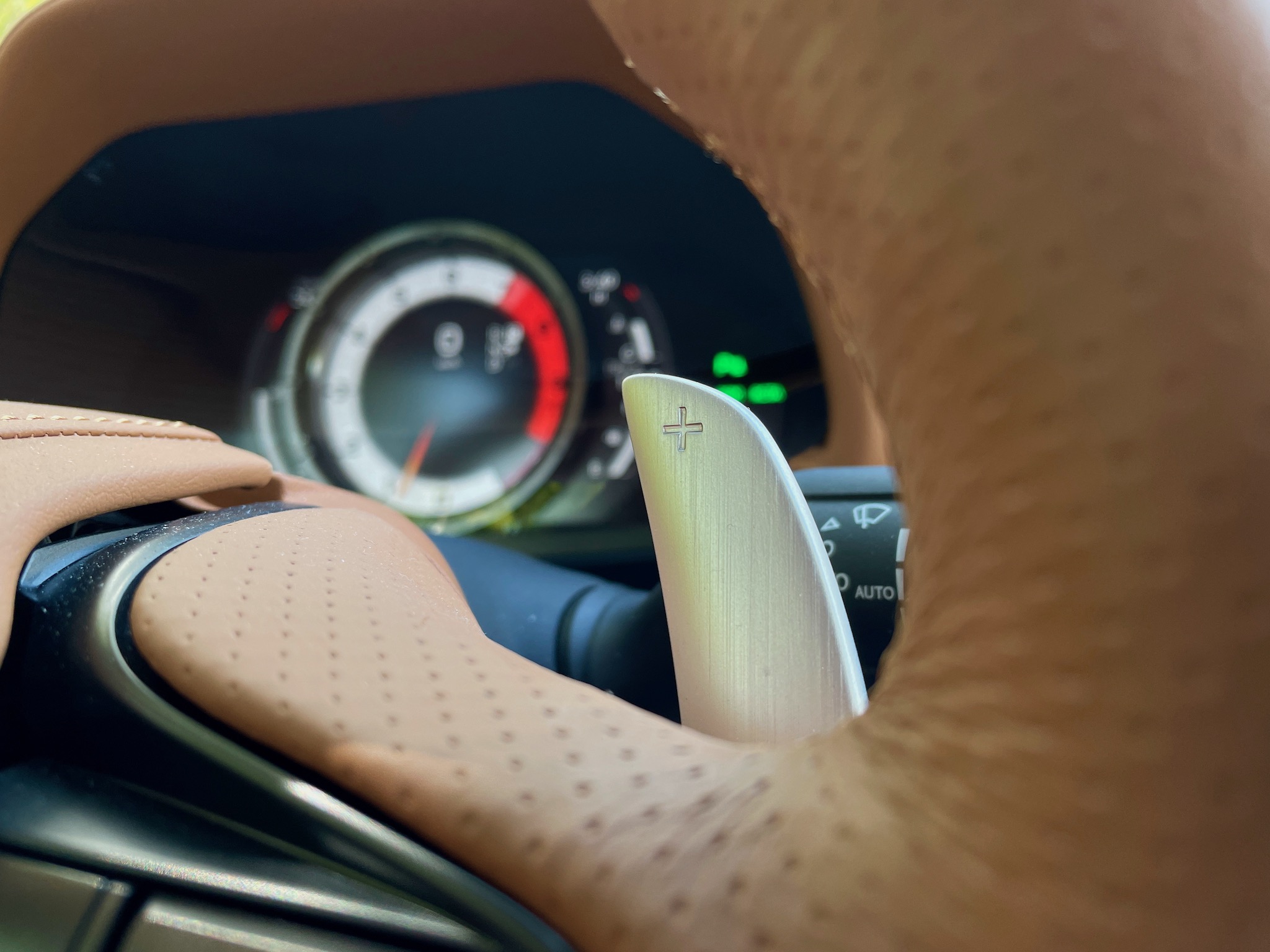 Steering is delicously direct, accurate, and lets in just the right amount of feel and vibration for a car that bills itself as a luxury GT. Brake pedal travel, meanwhile, is solid and short—as it should be in a performance car. The automatic transmission—a 10-speed Aisin unit that, according to the company, is not used in any other Lexus or Toyota product—responds very quickly to pulls of those big magnesium paddles.