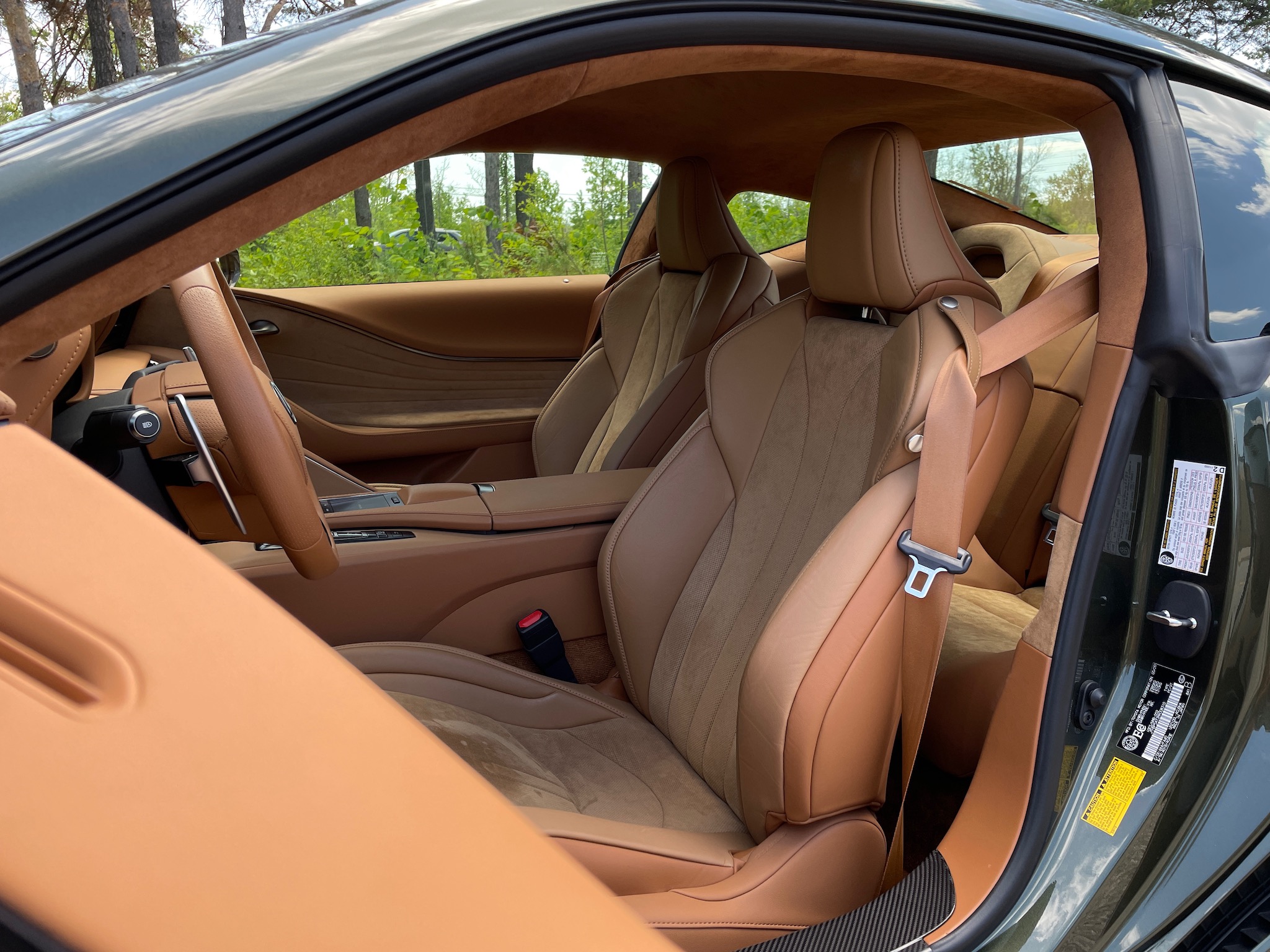 Built on the stiffest Lexus chassis ever (stiffer than even that of the LFA supercar), the LC as a whole feels substantial, eager, responsive, and thrillingly easy to drive fast. It’s also enjoyable at more pedestrian speeds and situations, too, where it’s about as unwieldy as a Camry. Visibility is good, as is the Adaptive Variable Suspension, which is appropriately supple when commuting, tied down when attacking corners, and never floaty. Couple that with one of the best, most supportive, and expertly bolstered seats I’ve ever sat in and one could drive the LC for many hours without complaint. A true grand tourer this is, through and through.