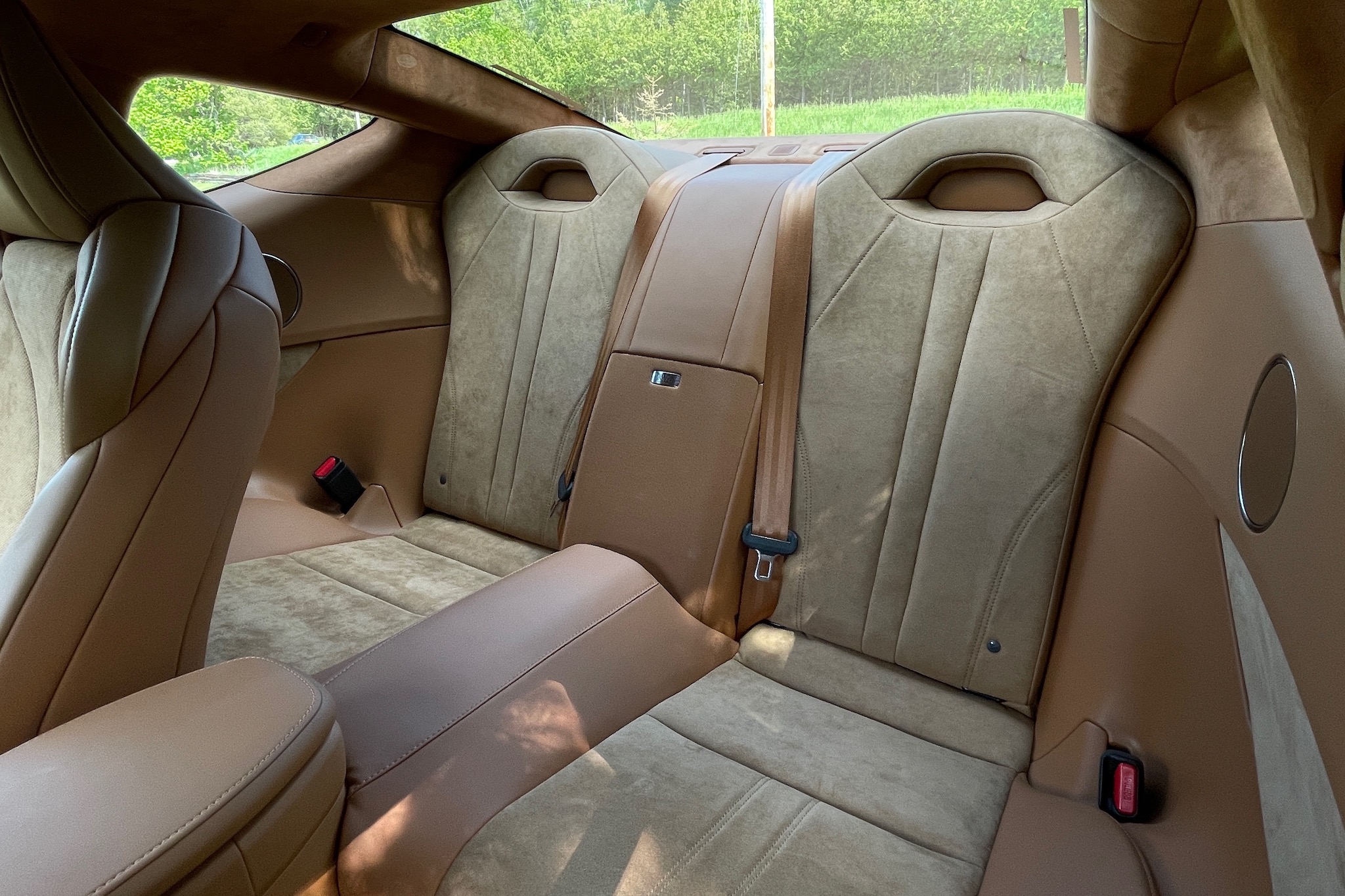 Meanwhile, this tester’s Toasted Caramel interior feels and looks as tasty as it sounds. I loved the supple, creamy leather and the liberal use of soft Alcantara. I loved how everything is laid out and—apart from maybe the steering wheel buttons, which are arranged similarly to those in a Corolla—it all felt very high-quality and special. The rear seats look a bit cramped because they are, but they’re honestly no tighter or roomier than most other 2+2s.