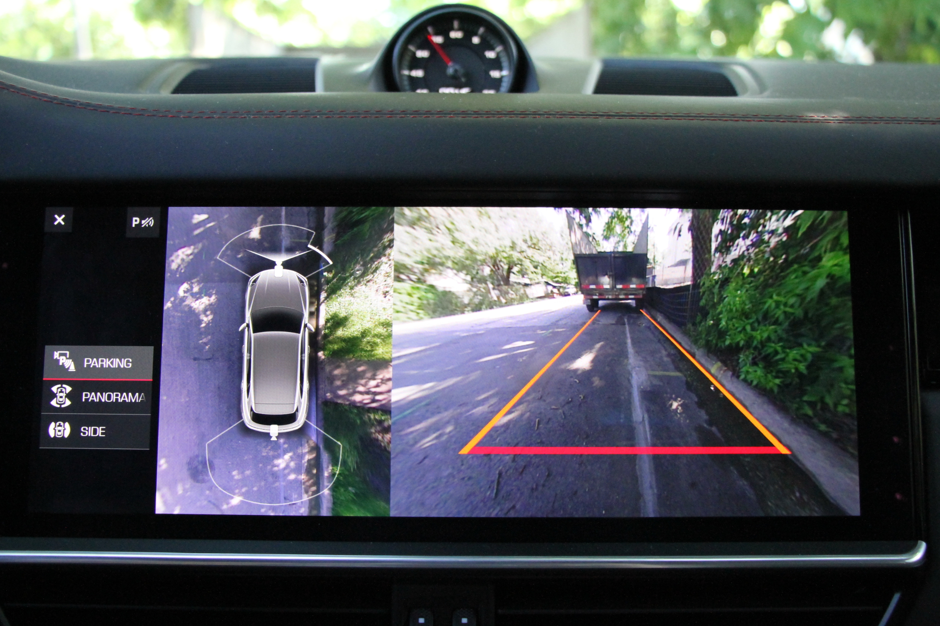 The test car was equipped with Porsche Dynamic Chassis Control ($3,590), an active anti-roll system that keeps the Cayenne from swaying too much in corners or on uneven surfaces, and which also pushes the wheels down to maintain as much contact with the road as possible.