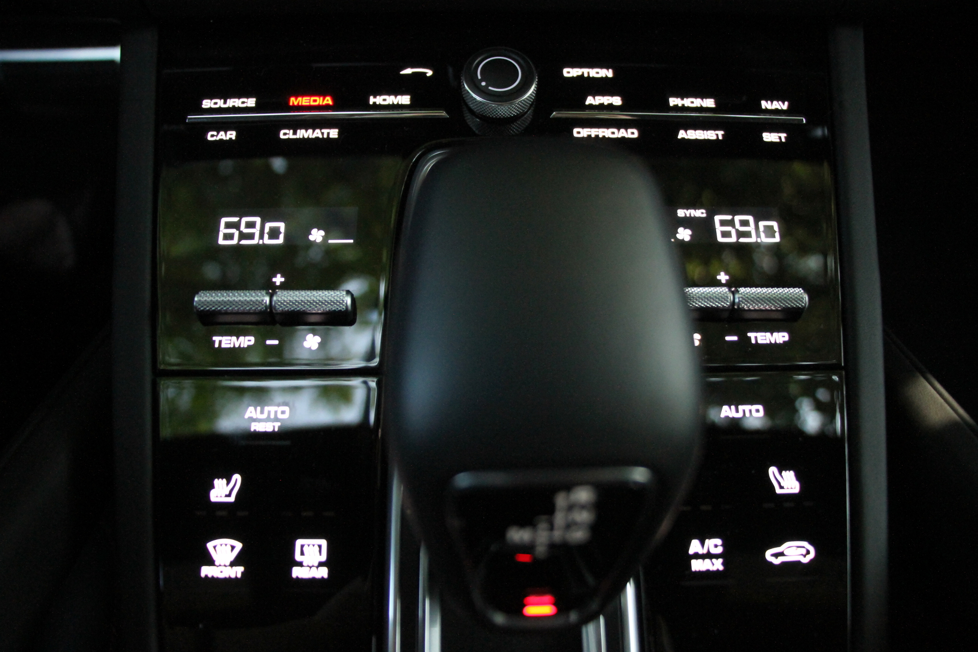 The third-gen Cayenne’s center console went hard on form and not so much on function. Various controls for the climate control, radio, seats and other functions are located around the gear selector on a flat piano-black panel that lights up with the location of each “button.” Functions that didn’t come with your car don’t light up, but you can still see them in the right lighting.