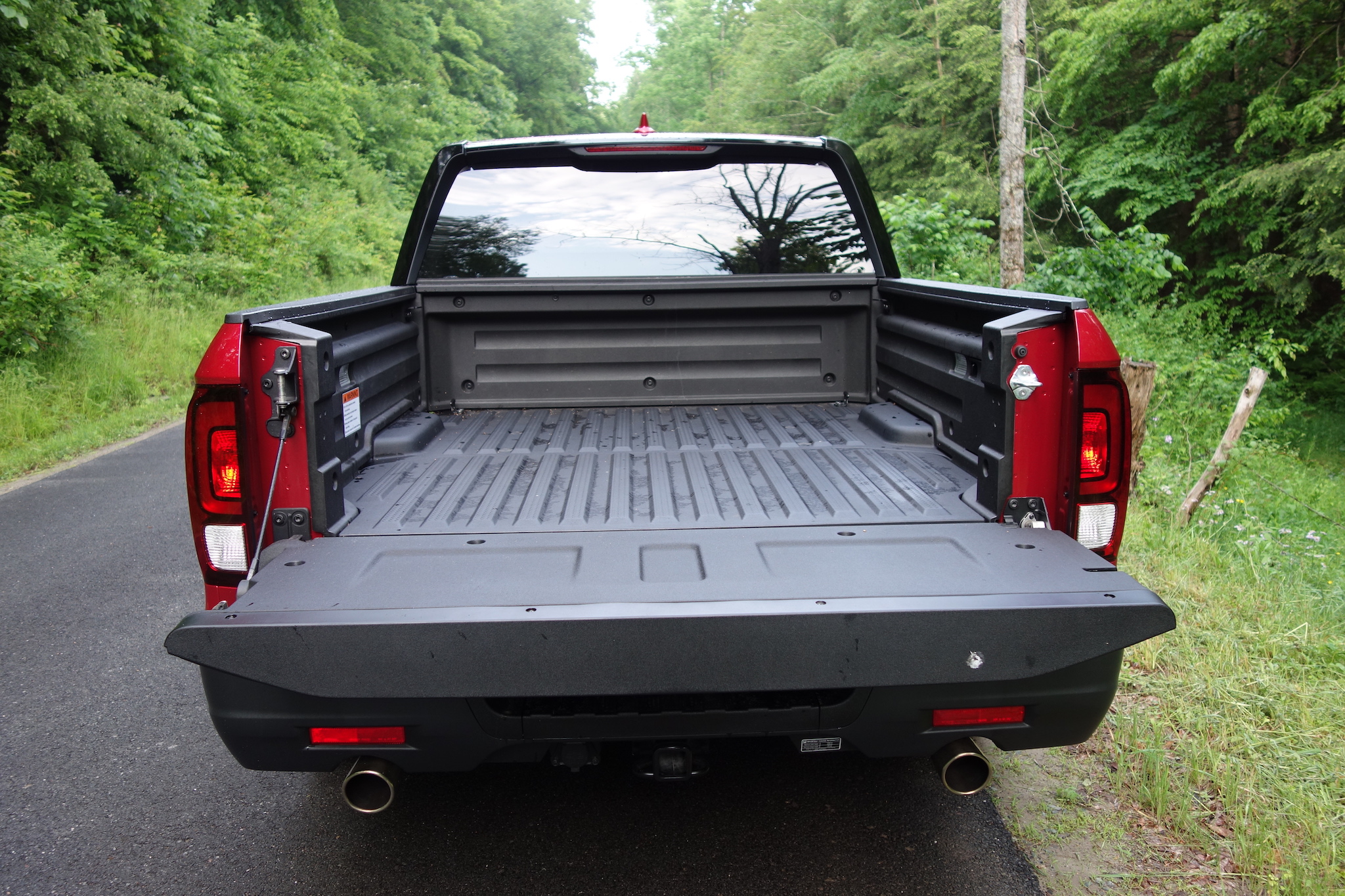 Q: Does the bed have convenient tie downs when you inevitably have to carry something that is too long for the bed? Not knocking the Ridgeline’s bed, seeing almost every other pickup I see only has a 5.5-6′ bed as well. Agree with the other comments though – wish it had an Avalanche mid-gate. Also would never pay $2,800 for plastic cladding, gold wheels, and stickers. —MantisToboggan
