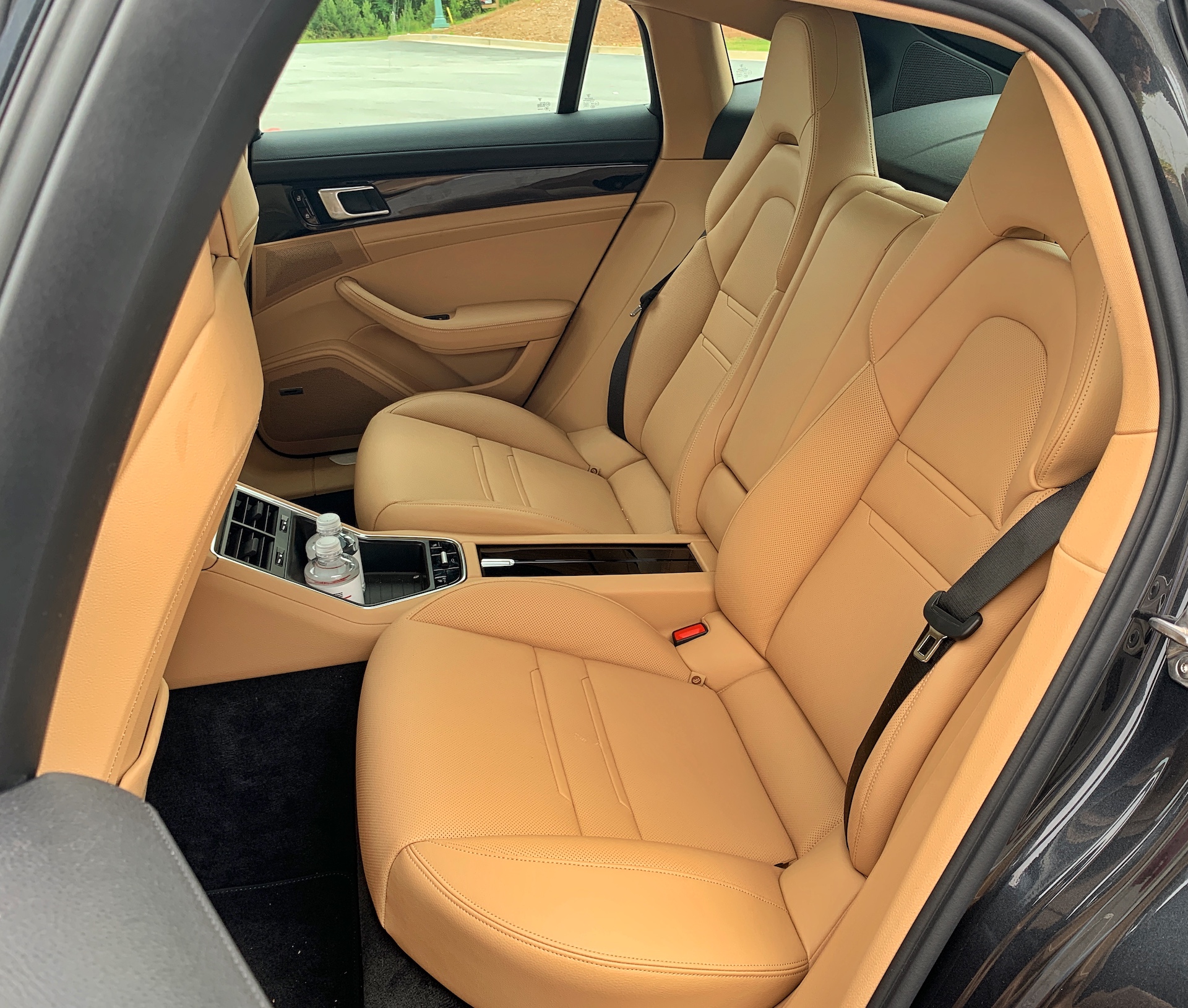 The back seats are divided by a center console that features two vents, a cubby for storage, two USB-C power outlets, and two pop-up cupholders. There are also buttons for the heated seats and for controlling the rear sunroof (there are two sunroofs). These are comfortable enough for kids and average adults, but folks taller than six feet will likely feel cramped. Porsche does offer the option of a bench in the back instead of the two individual seats, which is perfect for families looking to sporadically fit three bodies in the rear.