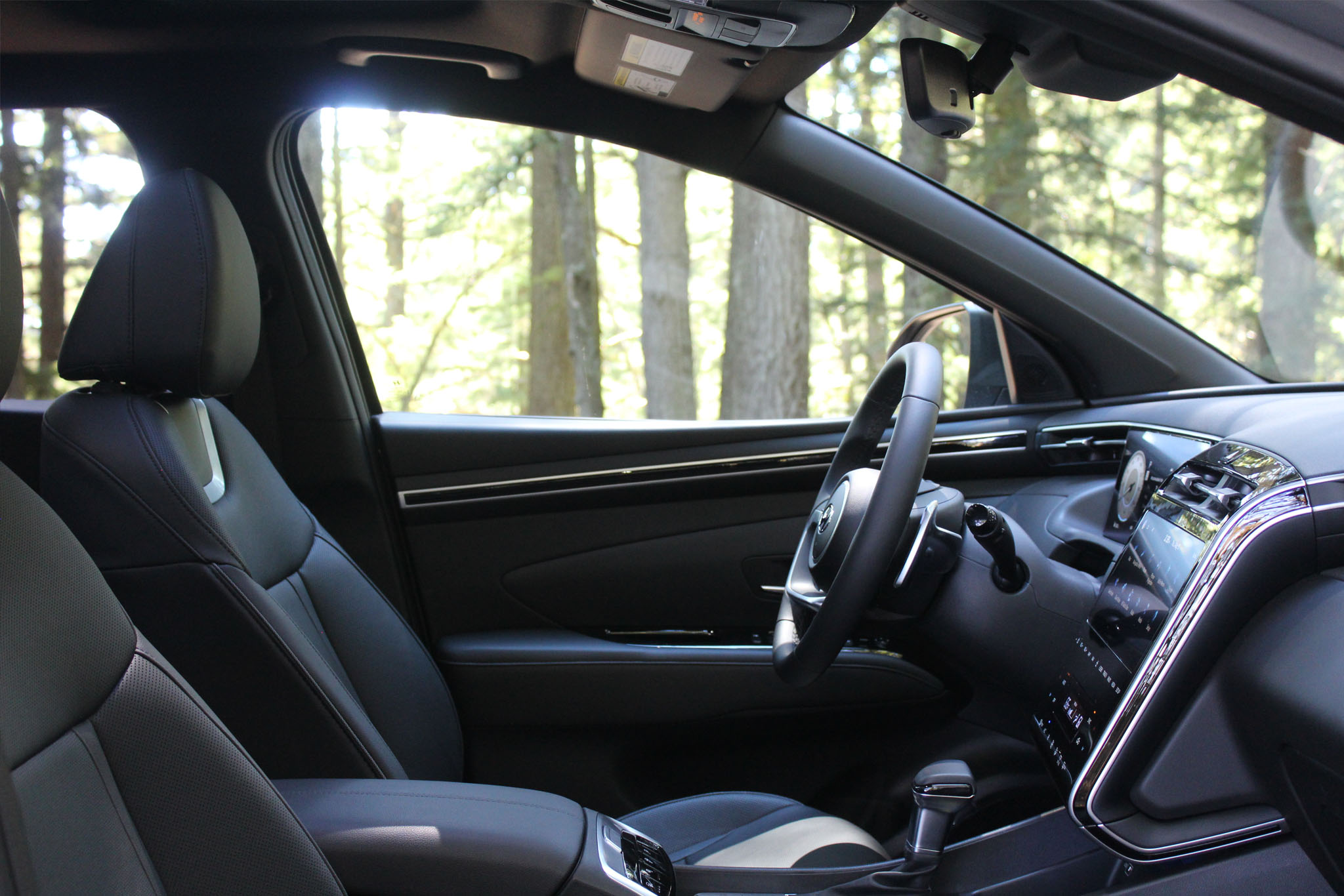 The Santa Cruz I borrowed was fully loaded. Instead of the big 10.25-inch screens shown above (instrument cluster and center stack), you’ll get smaller ones if you opt for a cheaper model. You’ll also be missing features like wireless charging, although both the driver and passenger get a USB port to themselves as standard, as well as a 12-volt outlet to share. Back seat passengers will miss the rear-mounted USB ports unless you go for the top-dog Limited model, but at least they can get those HVAC vents if you’re willing to spring for the second-highest SEL Premium trim. In any case, rear legroom is acceptable unless you’re sitting in the middle. I’m around five-ten and fit back there fine.