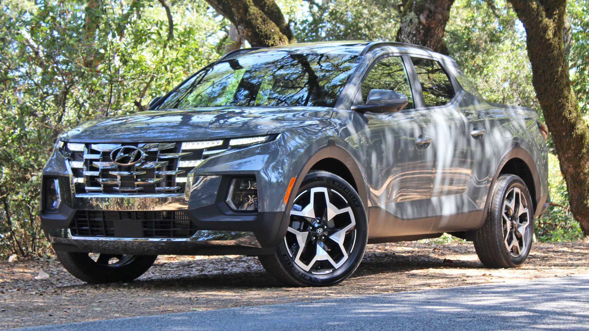 The eight-speed DCT doesn’t fire off shifts as it does in Hyundai’s sporty sedans, but it changes gears smoothly and responsively when you ask. Handling-wise, the Santa Cruz drove like a small crossover, with limited body roll and a pleasant ride. It never beat me up, even with the optional 20-inch wheels, responding to deeper potholes with a soft, muted impact, and handling undulating road surfaces without feeling boaty.