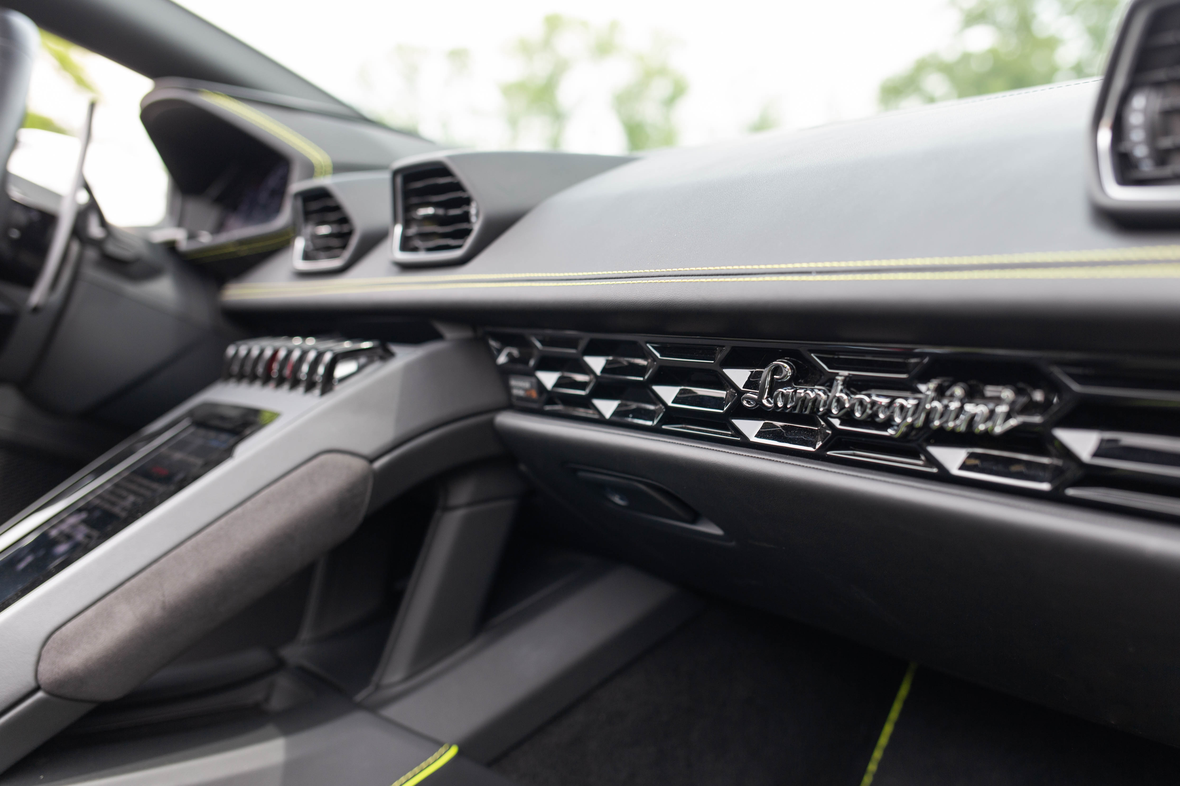 For how large it is on the outside, it translates to precisely zero livable room on the inside. The front trunk is hilariously small, the carbon-fiber bucket seats are hard as rocks and do not raise so I spent the entire weekend guessing as to where the car ended, and there are zero cupholders. You are not allowed to hydrate while sitting in the Lamborghini. These are the rules, it seems.