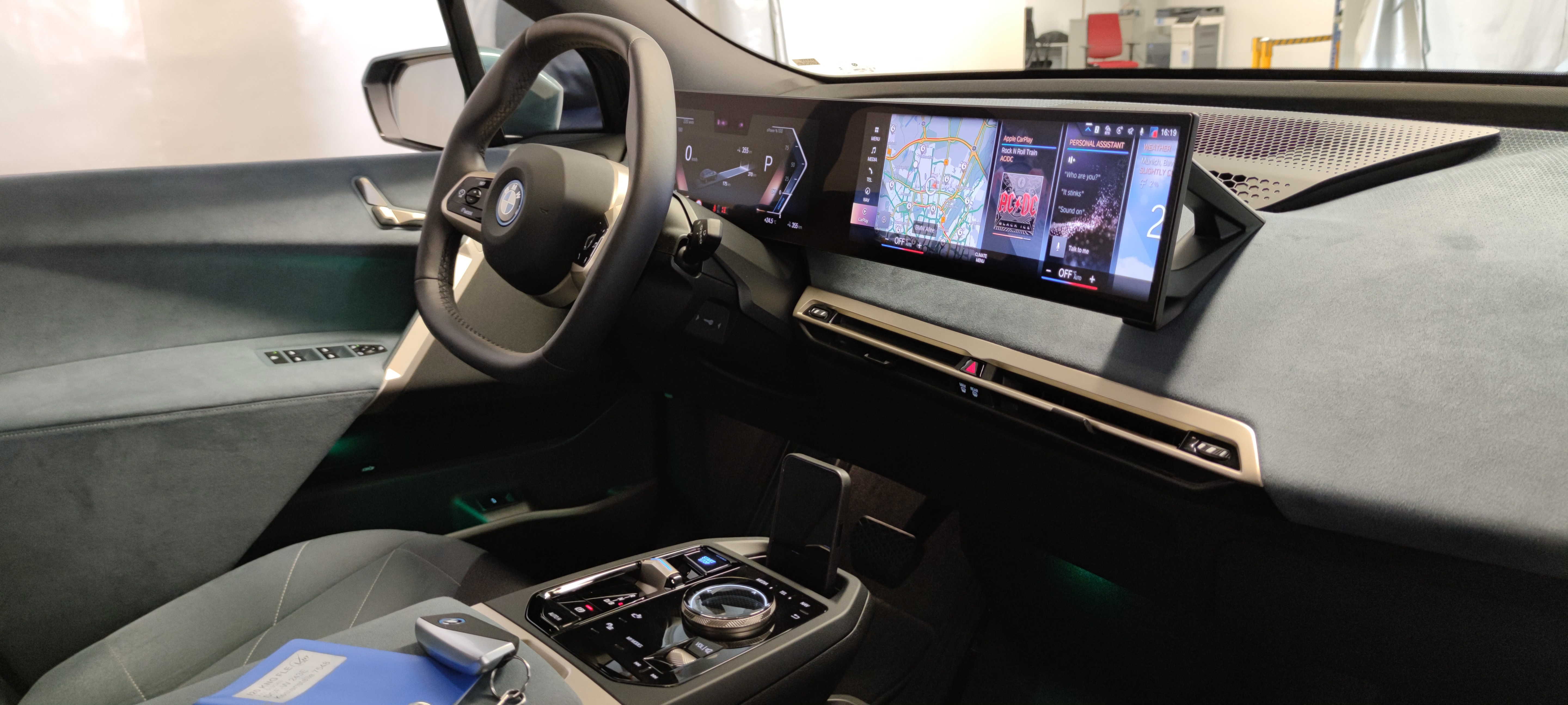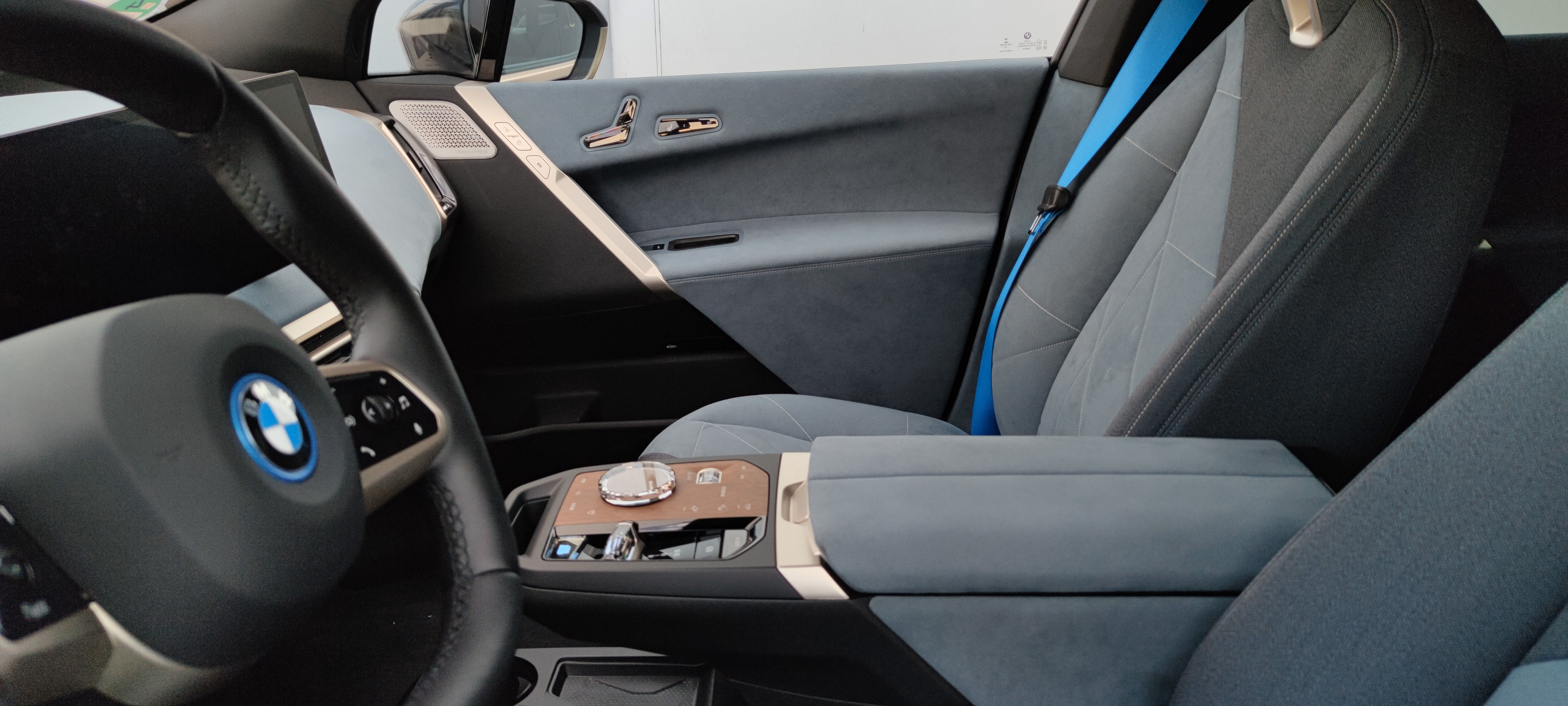 With touchscreens, you lose the reassuring physicality of a button, which is fine on a phone screen because you’re looking at the phone. When you’re driving, you shouldn’t be distracted. So the incongruity of a ban on texting while you’re on the road, only to install, basically, giant phones in every new car is something I am really not keen on. BMW, as it has for years, packages a nice rotary controller with haptic feedback in the center console. In the iX I rode in, the console’s finish was veneer—an optional extra that goes with the crystal door controls and a wheel with crystal edging (you should get this, it’d insult the car otherwise). I was able to easily feel which button I was pressing with my fingertips; switching between performance modes and able to access cute little aesthetic features like making the roof less opaque. It felt natural to be able to change things with my stick hand and not at all like I’d have to look down or fiddle with it.