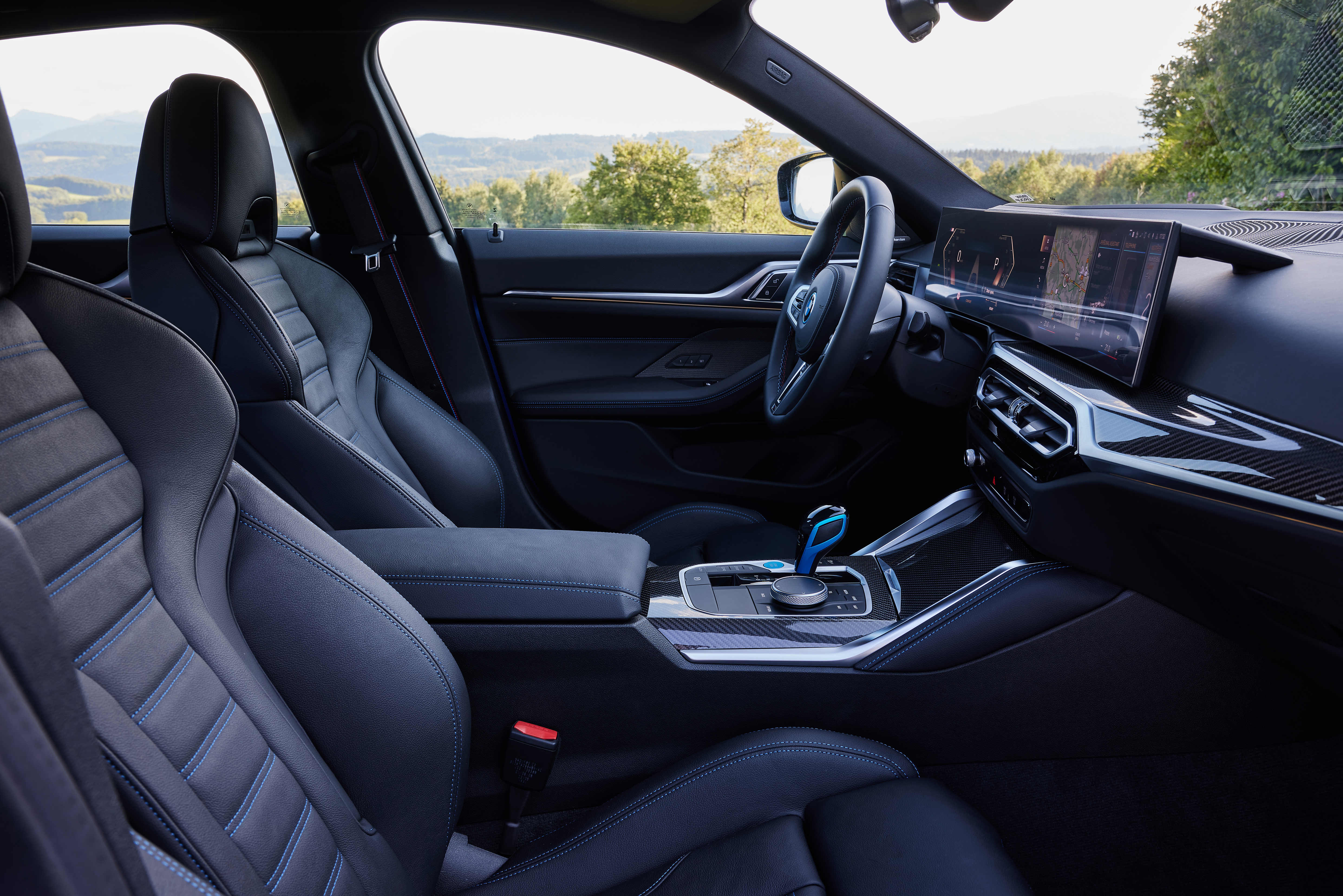 Without knowing anything about it, you’d be none the wiser that the i4 lacks an internal combustion engine. It looks like a five-seater, four-door 4 Series, and therein that normalcy lies its appeal. It wears the by-now-familiar grille and has your typical 4 Series sporty touches such as sleekly shaped windows, taillights, and headlights. Two trims of i40 are available: the rear-wheel-drive i4 eDrive40 with a claimed 335 horsepower, and the all-wheel-drive i4 M50, good for a claimed 536 hp. The latter, which is what BMW gave me to test out, represents the automaker’s first all-electric performance car.