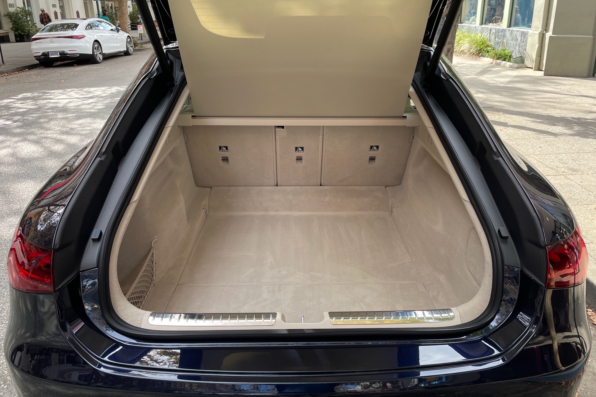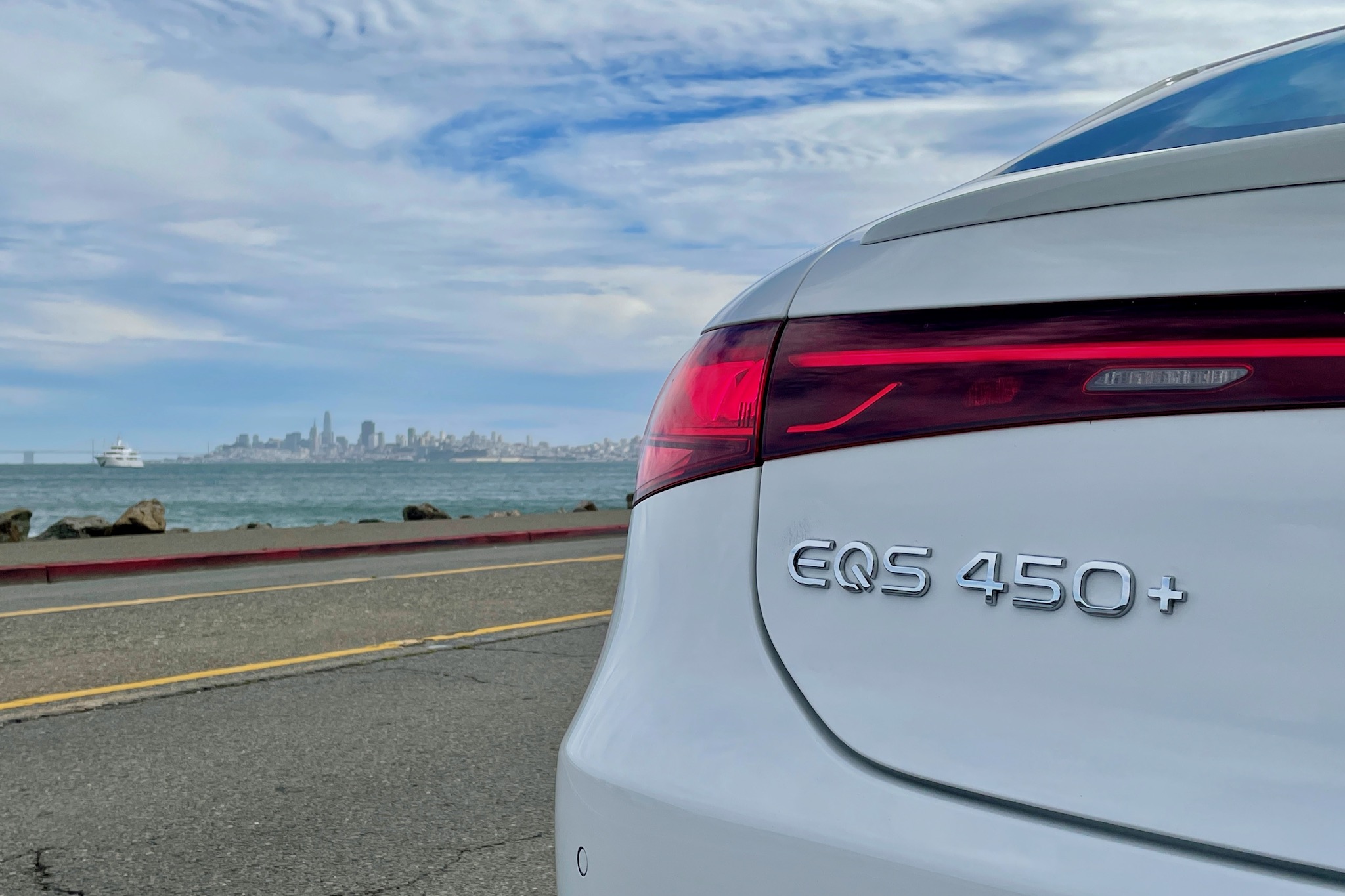 Speaking of “not a fan,” the brake pedal is longer and squishier than I’d like. Thick A-pillars and a small rear window (likely a byproduct of this car’s hatch setup) mean the EQS isn’t always the easiest sedan to see out of. Road noise is appreciably minimal but, despite that record-breaking 0.20 drag coefficient, wind noise is more apparent than expected mostly due to the fact that there’s no internal combustion engine drowning it out.