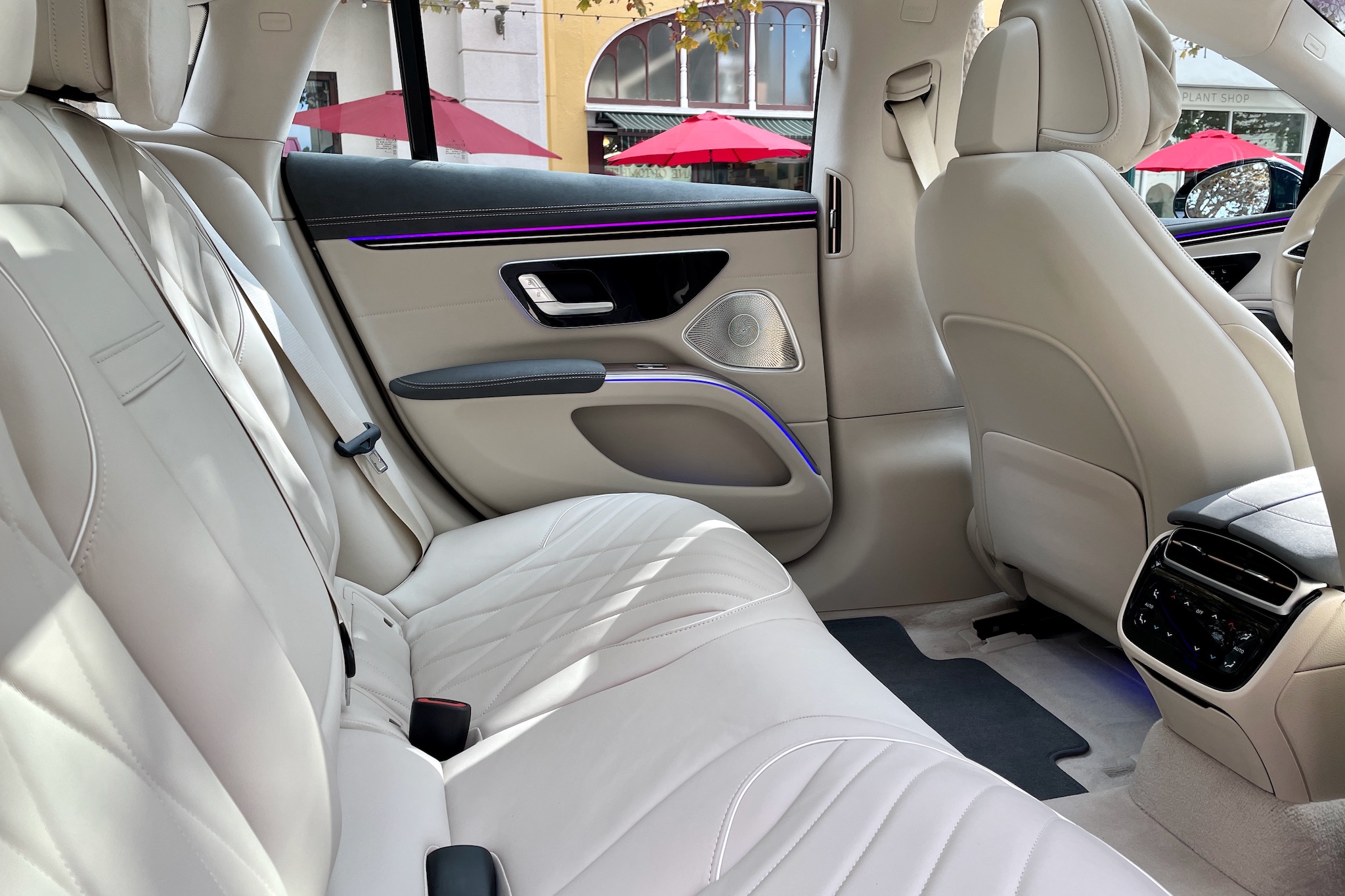 As an item, an EQS 580 with the white interior feels like what angels would drive if they didn’t have wings and heaven had roads. There’s a pure, perfect, and majestic quality to the cabin that you definitely do not get with the competing Tesla, Porsche, or Audi’s more machine-like cockpits. Pretty much everything is extremely well-thought-out to cater to your every whim.