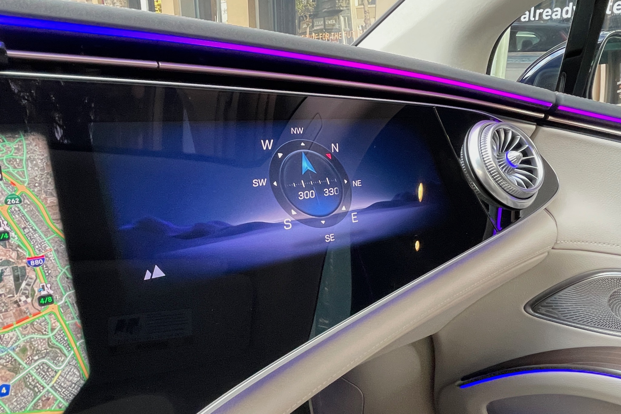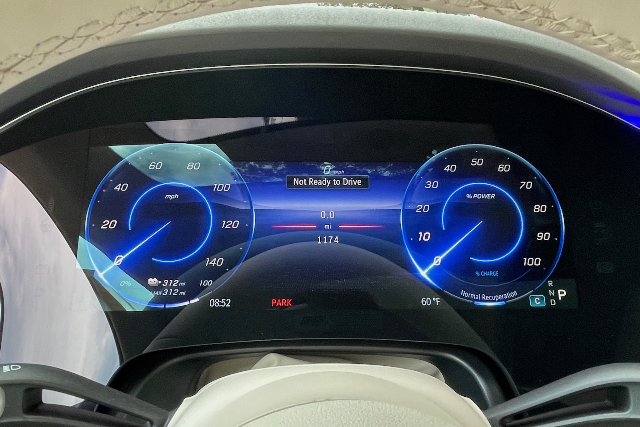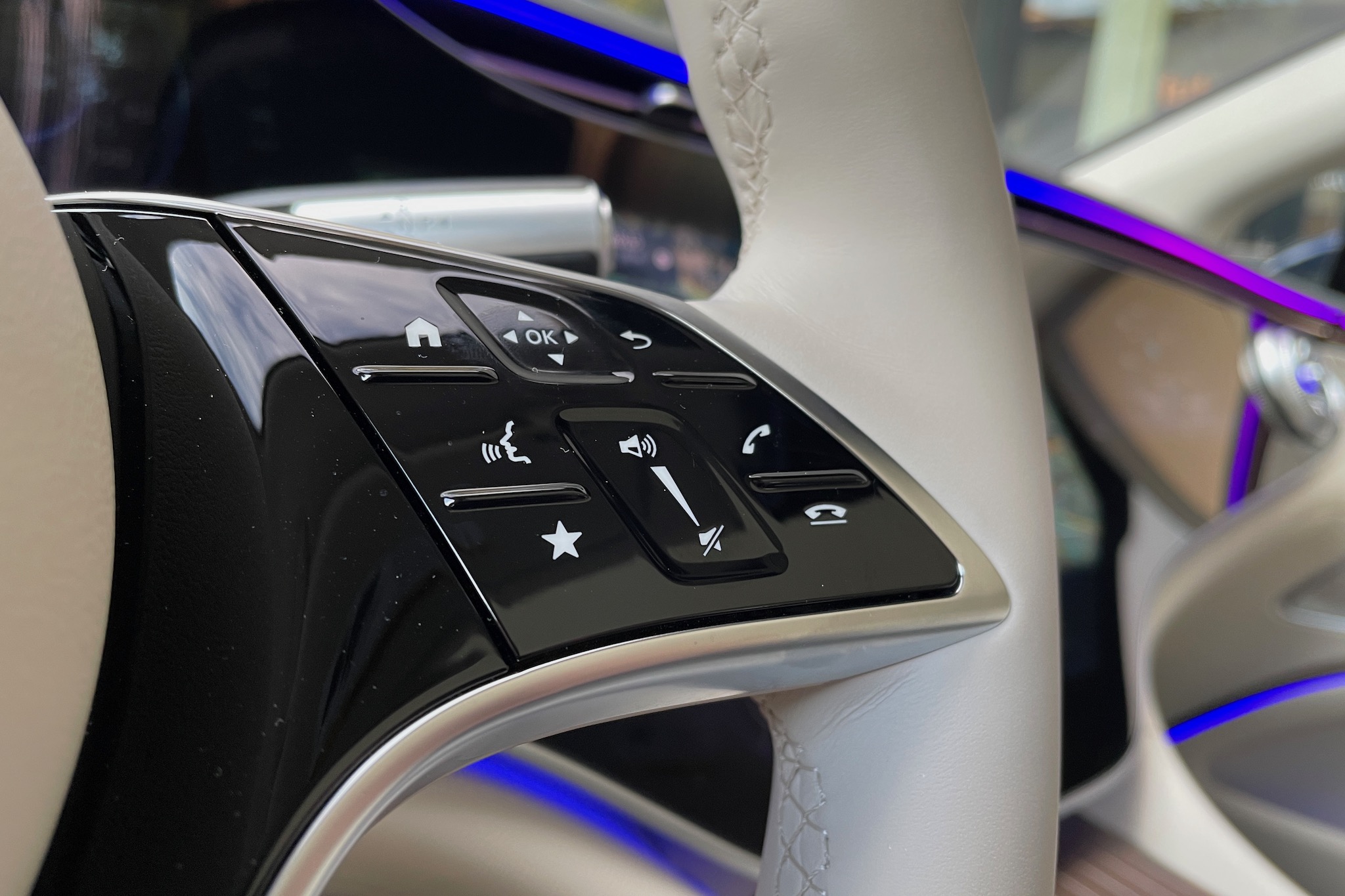 One big negative about the EQS’ user interface doesn’t directly have to do with the Hyperscreen itself: The EQS does not have a volume knob. Instead, the only two ways you can adjust the volume are both touch-sensitive in some capacity. The slider on the steering wheel? Fairly easy to use without looking but annoyingly imprecise. Because, y’know, it’s a touch slider. The big, touch-dependent button near the start/stop button? More precise than the steering wheel slider but impossible to use without looking down.