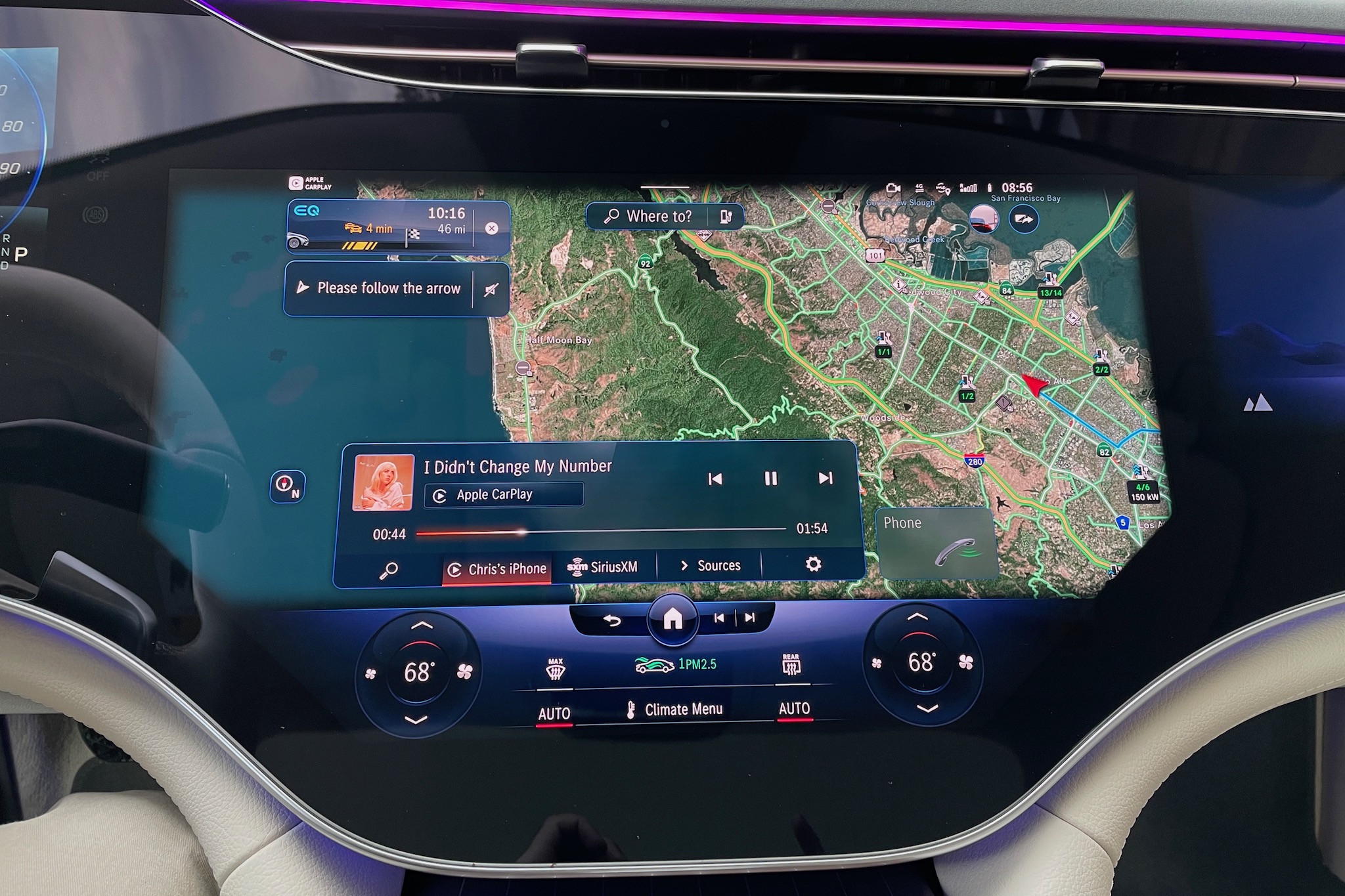 Unfortunately, I did not really have enough time to test how well the EQS could anticipate my daily needs. But even discounting that whole shebang, there really aren’t many built-in infotainment systems out there that are better at being infotainment systems than Apple CarPlay and Android Auto but, lo and behold, Mercedes has pulled it off with MBUX’s Hyperscreen setup.