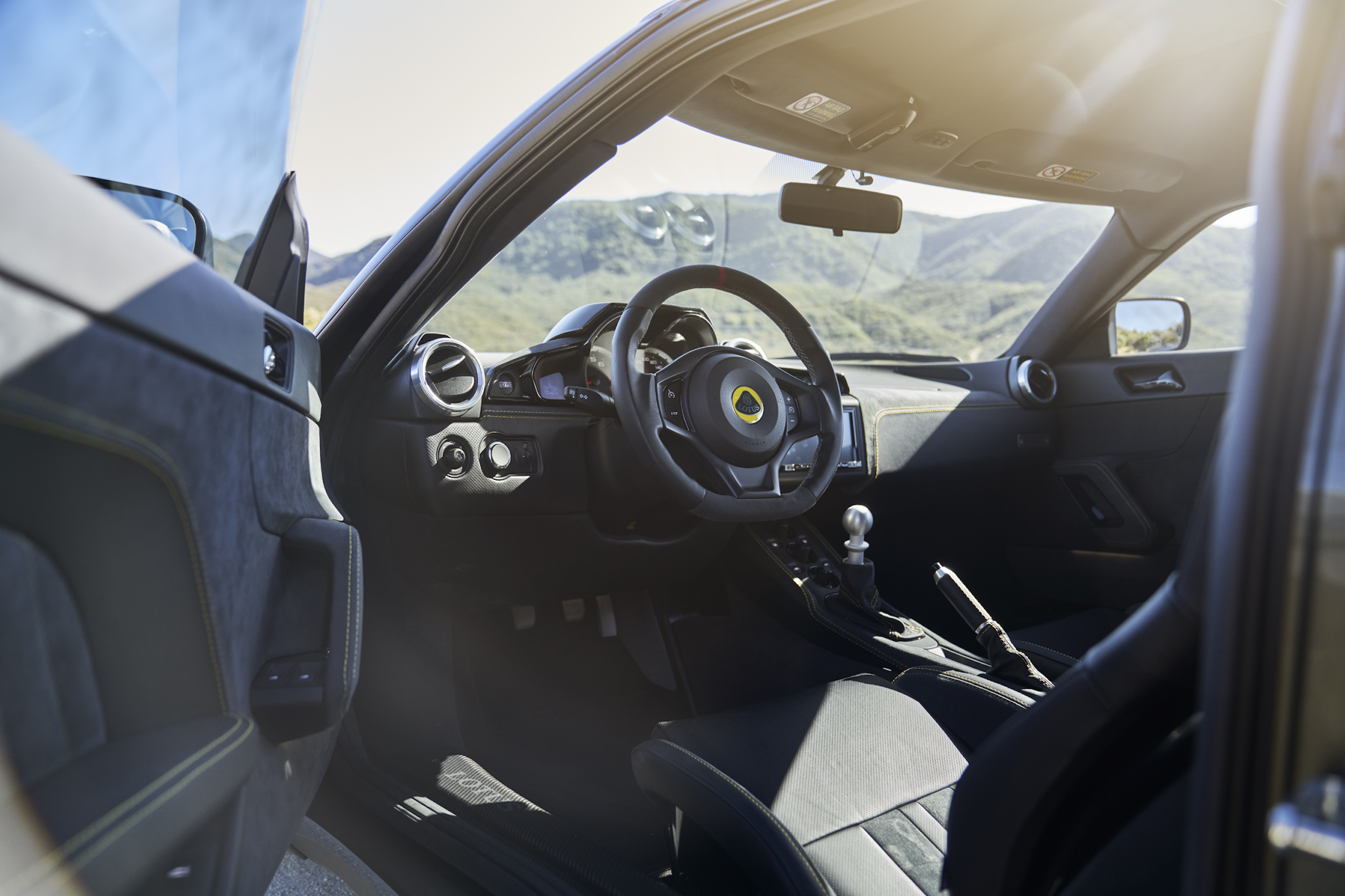 As soon as you climb into the Lotus, it’s clear that driving is the priority. You sit here because you’re ready to drive, not because you want to be coddled. The climate system, while delightfully easy to use—there’s one dial for temperature and one dial for fan speed—is about it in terms of available creature comforts. There’s laughably little storage space for loose items and the cupholder way behind the handbrake was certainly placed there to keep it away from the main act of shifting gears. Someone sells a car where selecting a gear doesn’t mean your hand or elbow collides with your drink? Unthinkable.