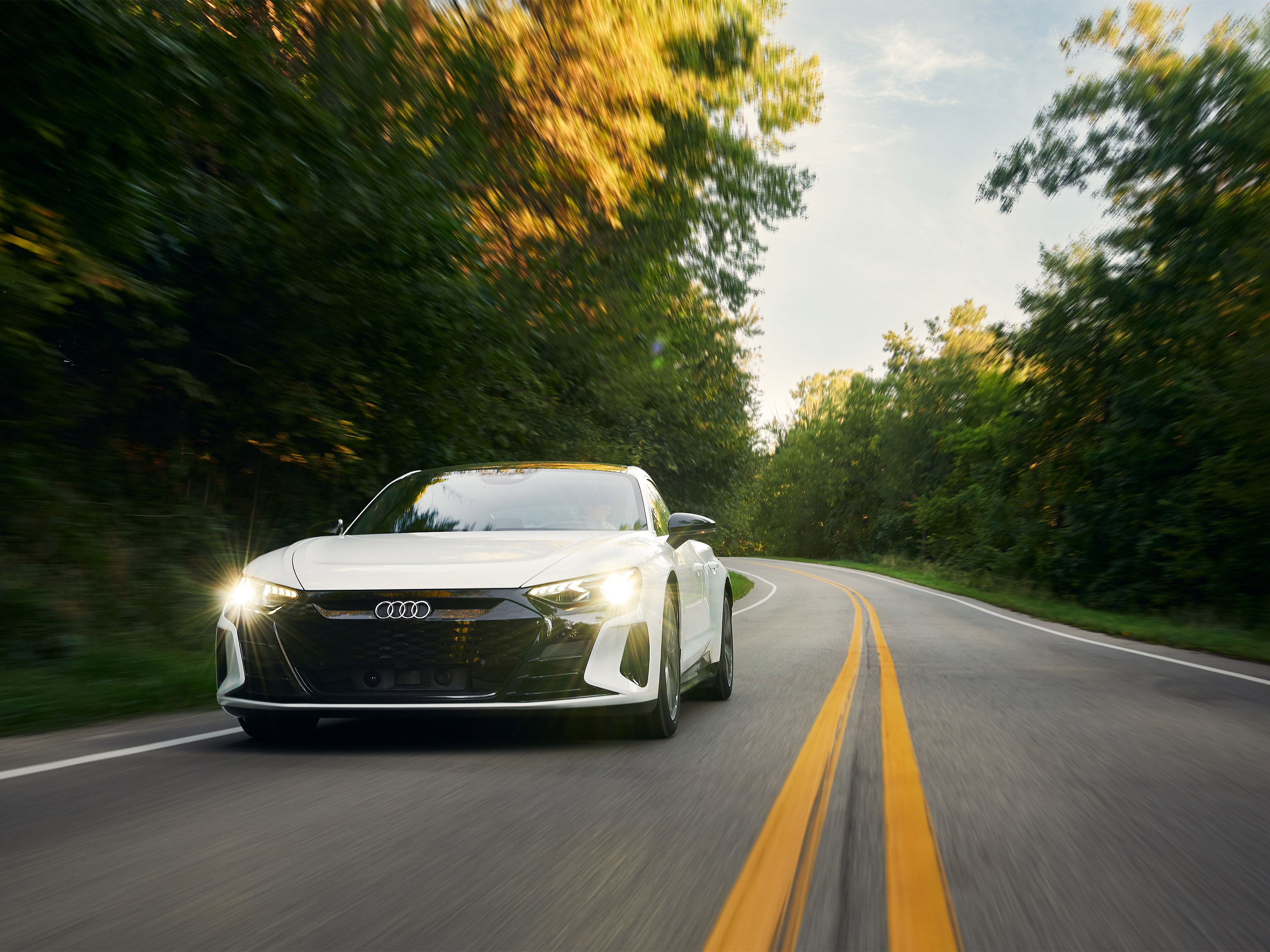 But leave the kids, the car seats, the luggage, and the bitching at home, point this evocative Audi at your favorite stretch of driving roads, and the E-Tron GT’s point of being snaps into focus. With its dual-motor, all-wheel-drive, 93.4-kWh battery, 522-peak-horsepower (469 hp when not in boost mode) powertrain, the E-Tron GT is massively quick, everywhere. Of course one almost expects to get chest-thumped by full-power EV acceleration these days—and the Audi doesn’t disappoint on that front—but the car also connects up corners on a tight, curved road with startling capacity.