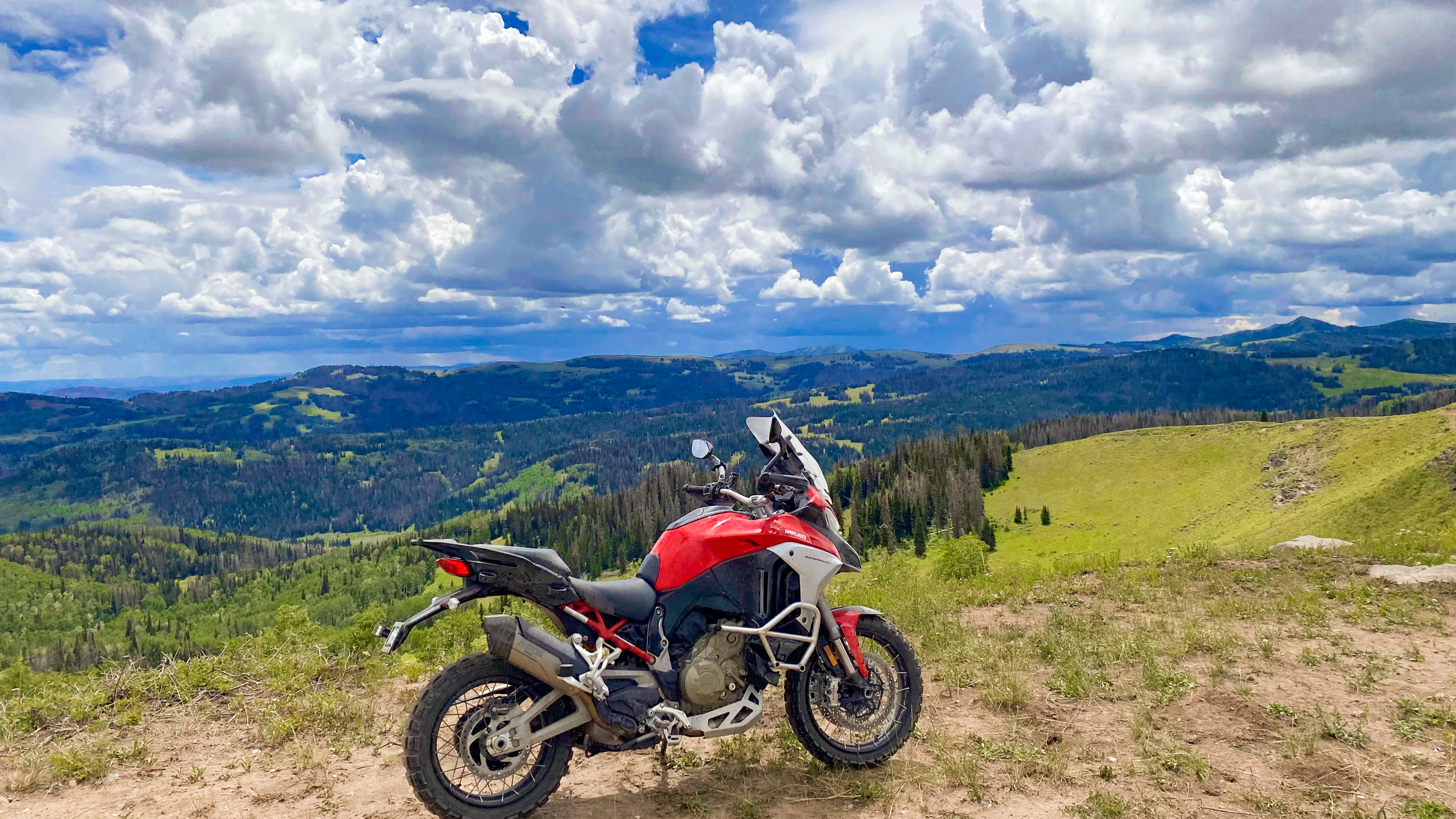 While UTVs of all kinds bespeckle the trails around where I live, most of the riders I’ve seen kicking up dust through the Wasatch-Cache mountain range just use dirtbike-based enduros—think Husqvarna 501, Honda CRFs, Yamahas of all sorts, and Kawasaki’s classic KLR platform. What I haven’t really seen are any actual adventure motorcycles (ADV) blazing the trails. Enter the B-2 Spirit of the ADV segment: the 2021 Ducati Multistrada V4 S.