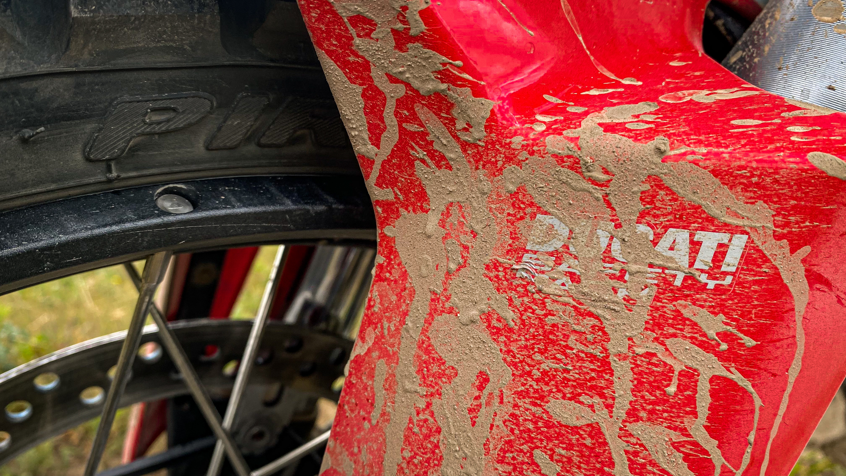 I beat this motorcycle like I was a Pony Express deliveryman who had 1,200 miles to San Francisco and only 24 hours to make it. There were long pavement rides carving my way through mountain roads that’d make Porsche’s engineers exclaim, “Scheiße!” where the Ducati glided from apex to apex more akin to its sport siblings. Even on the knobby tires it felt excellent and leaned hard, an extension of my hips—something that wasn’t happening with the Indian FTR S.